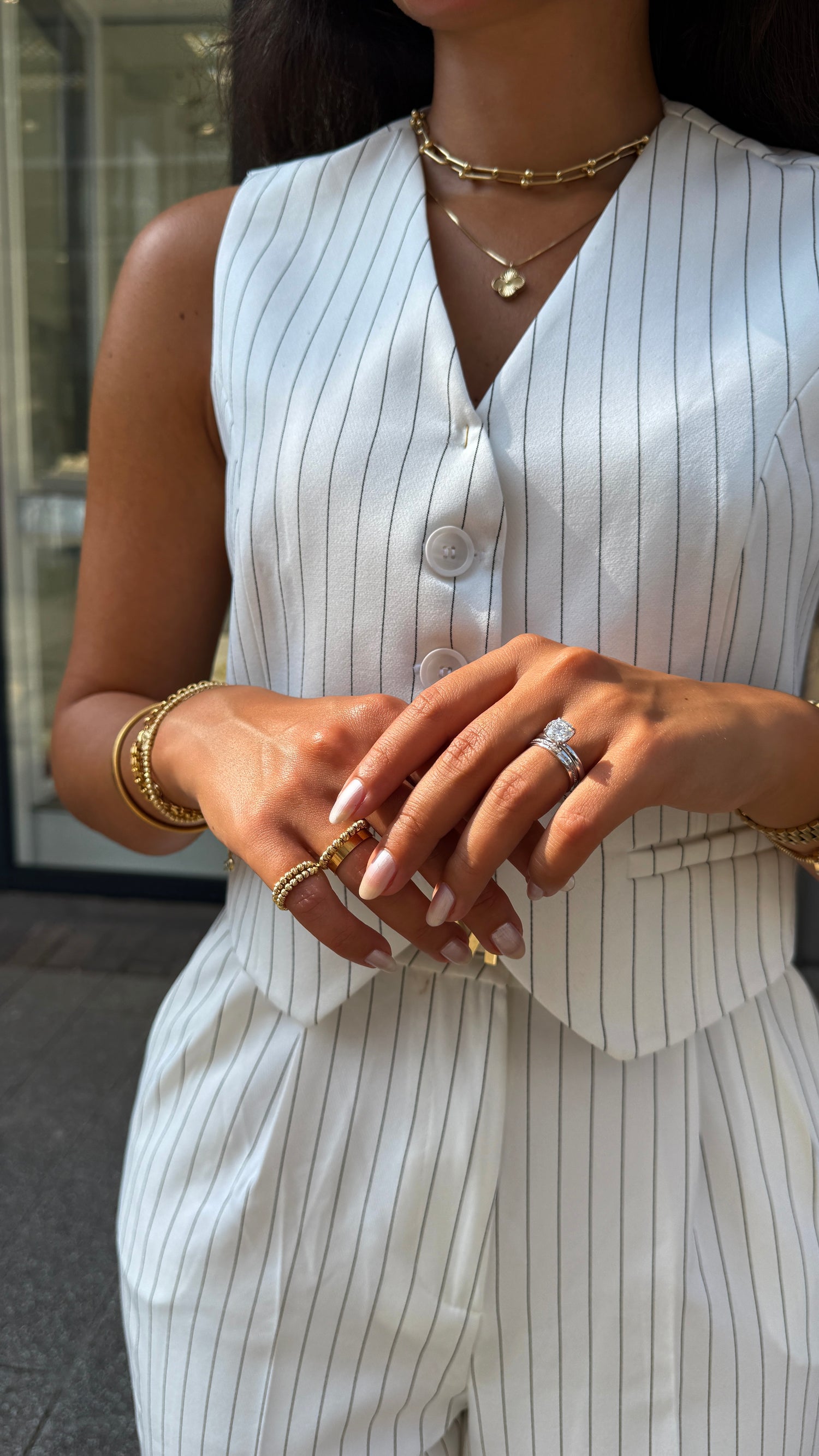 Hochwertige Materialien wie Diamanten, Zirkonia, 18K Gold und 14K Gold.