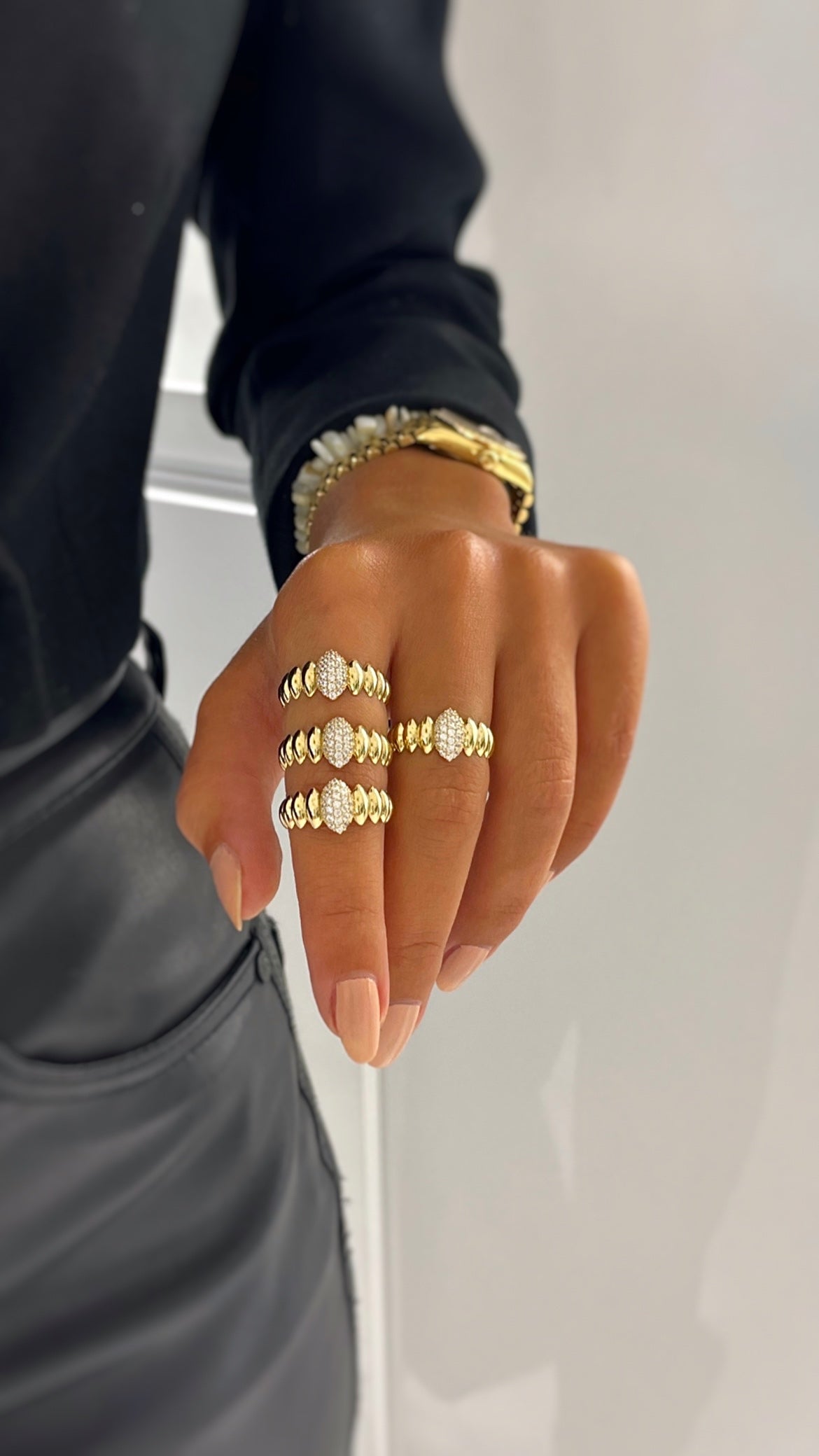 ADIN ist ein ausdrucksstarker Ring aus 585er Gelbgold, der durch seine hochwertigen Zirkonia-Steine und ein modernes Design hervorsticht. Der Ring bietet eine solide und passgenaue Passform, die für ein trendiges und komfortables Trageerlebnis sorgt.