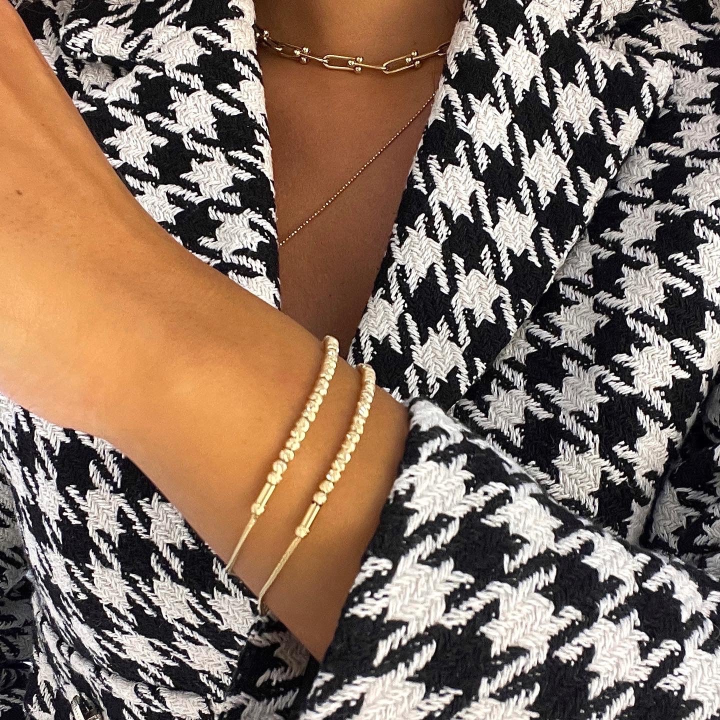 Das AHENK Dorika Armband ist aus 585er Gelbgold gefertigt und präsentiert ein neues Design. Seine Struktur garantiert ein ansprechendes Funkeln. Verleihen Sie Ihrem Look ein einzigartiges Finish mit diesem exklusiven Armband.