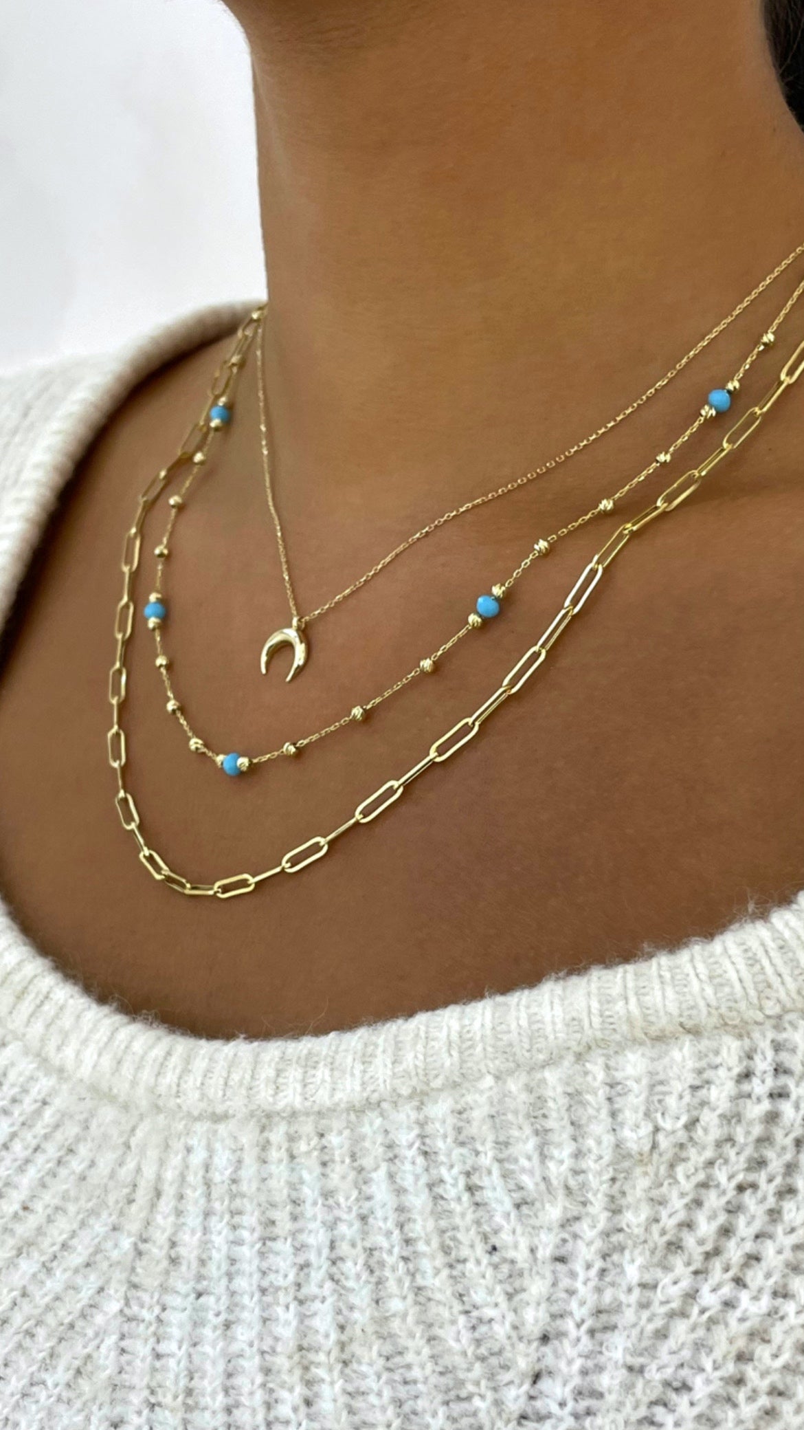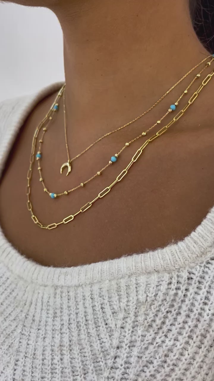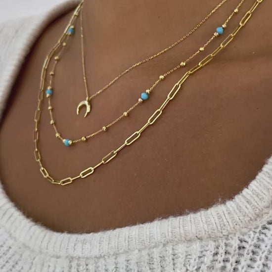 2. Dorika Turkis: Collier mit Türkis farbenen Steinen & Dorika Kugeln in einer feinen Kette , 45 cm lang