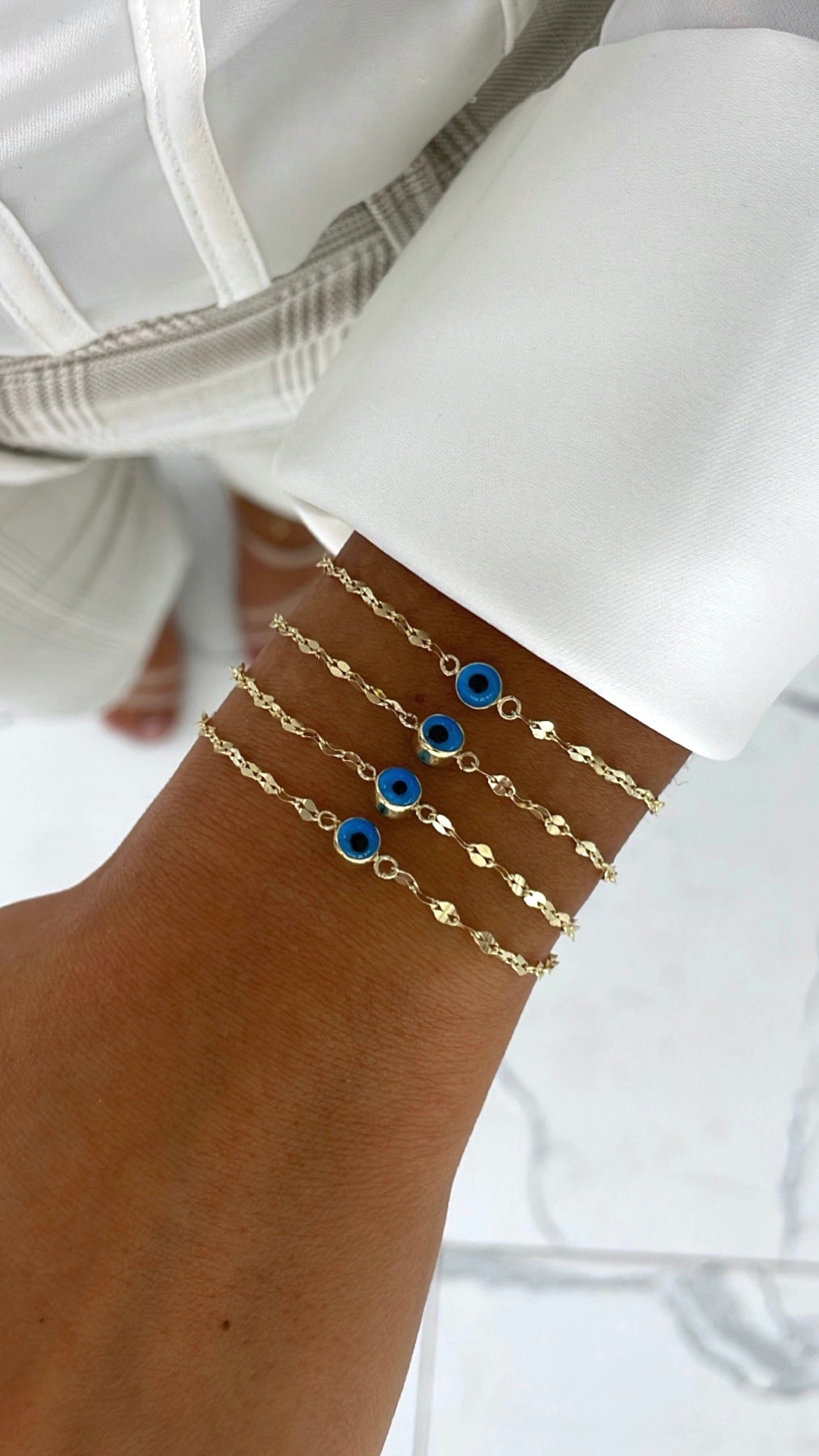 Entdecke das Aynali Blue Eye Armband für eine einzigartige Optik. Das Nazar-Motiv funkelt im 585er Gelbgold und ist ein wahrer Hingucker für jeden Anlass. Verleihe deinem Look mit diesem Schmuckstück einen erhabenen Charakter.