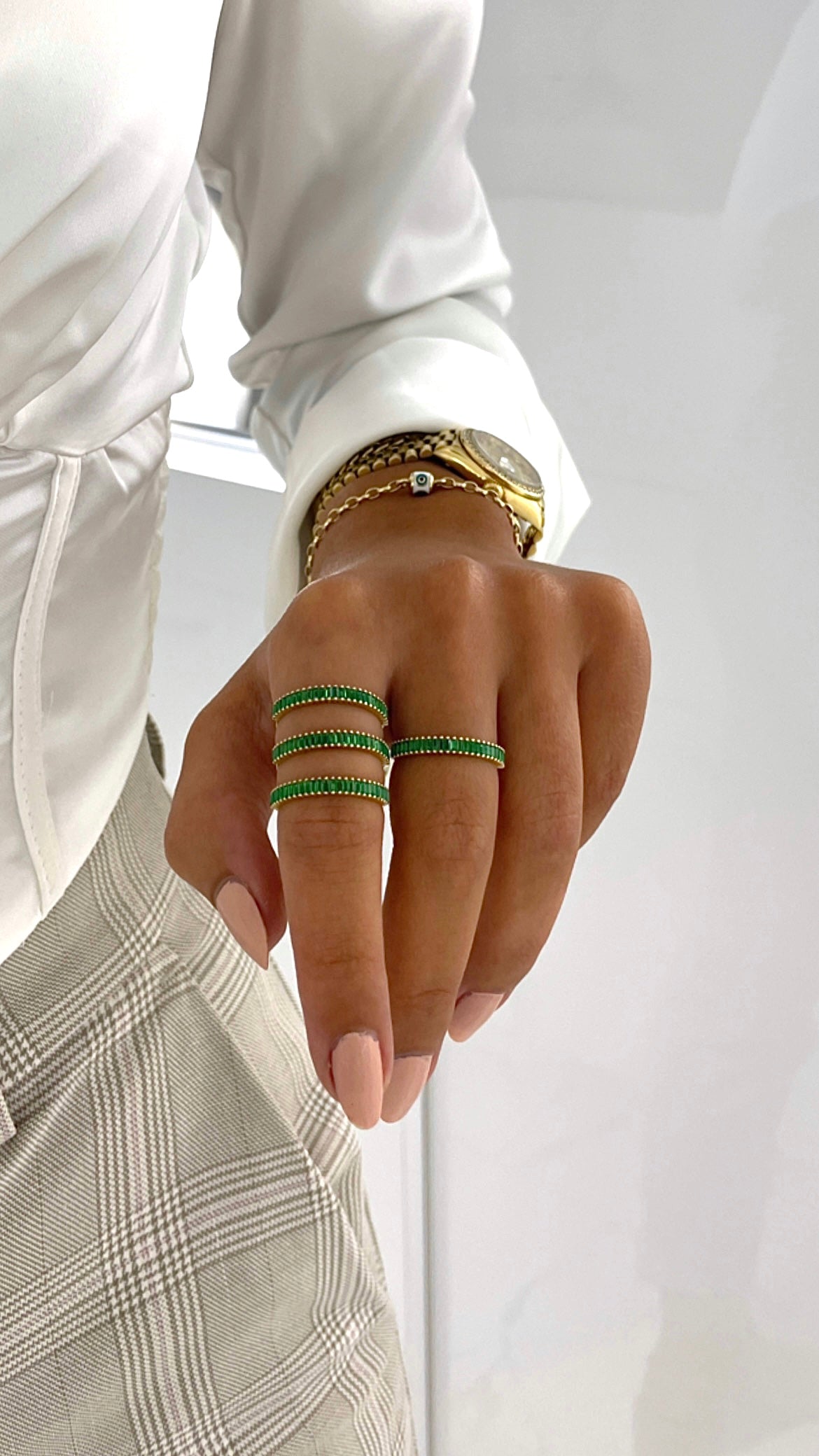 Der Baget Green Ring ist ein must-have für grüne Farb-Liebhaber. Mit seinem hochwertigen 585er Gelbgold ist das neue Design luxuriös und bestechend. Ein schönes Accessoire für jedes Outfit.