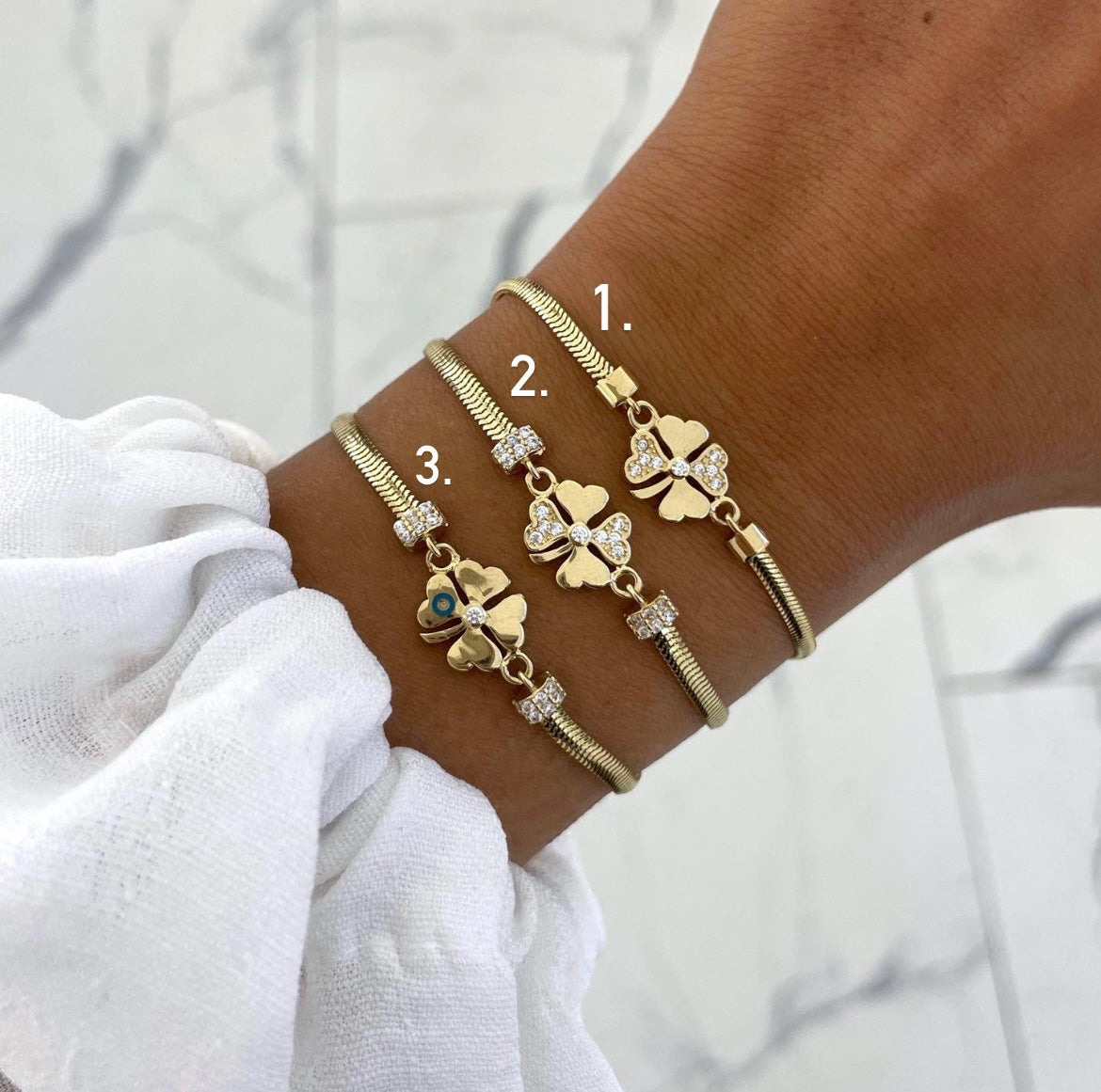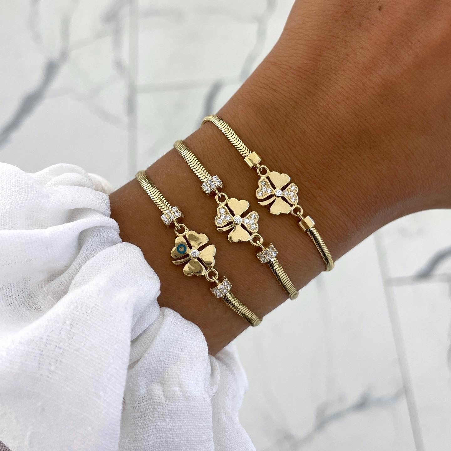"Bringt Glück und Stil mit dem Balıksırtı Yonca Armband aus 585er Gelbgold. Das neue Design ist ein Hingucker und der perfekte Glücksbringer. Setzen Sie ein Statement mit diesem zeitlosen Accessoire."