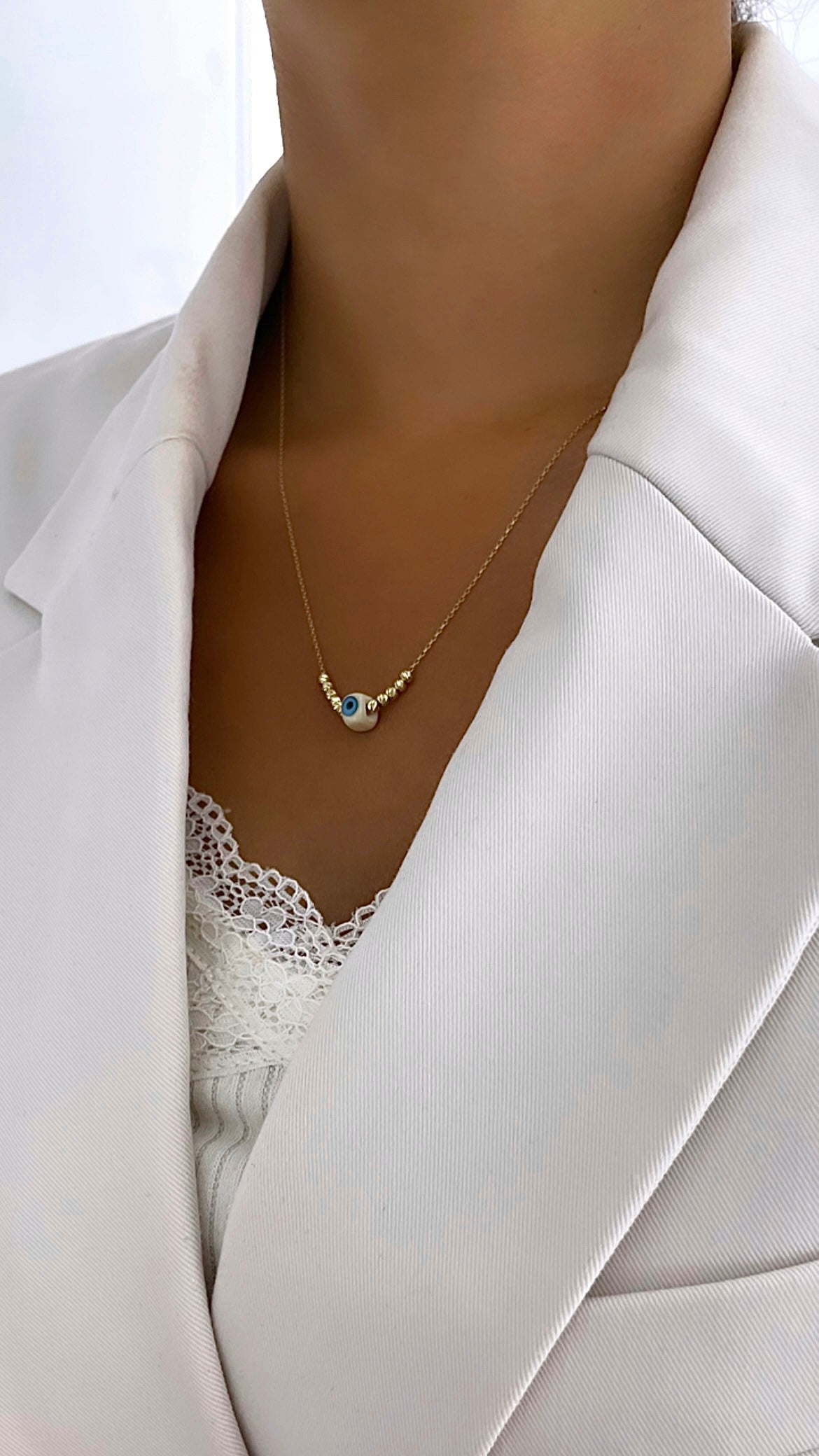 Green Eye Collier aus Dorika Kugeln und einem beige Nazar Stein