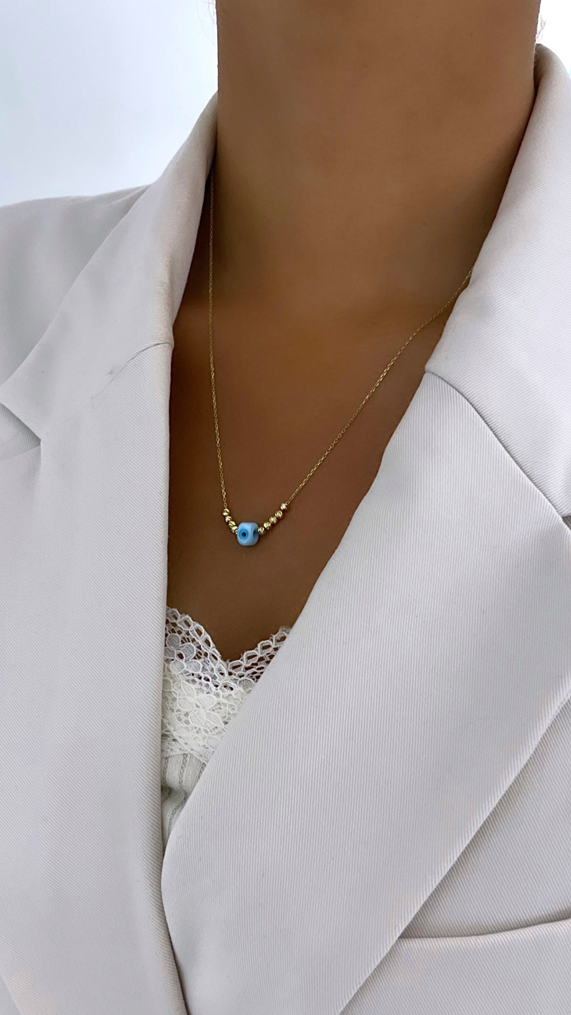 Blue Eye Collier aus Dorika Kugeln & einem blauen Nazar Stein