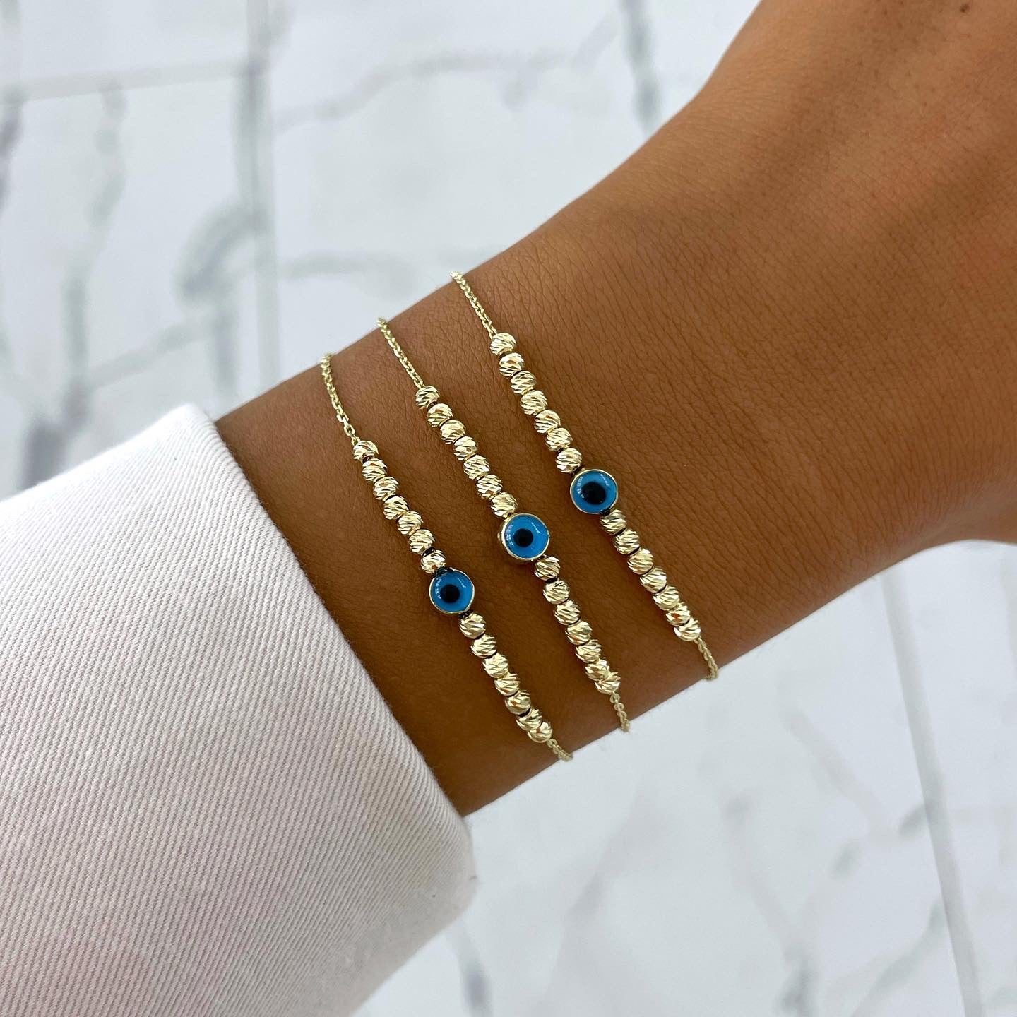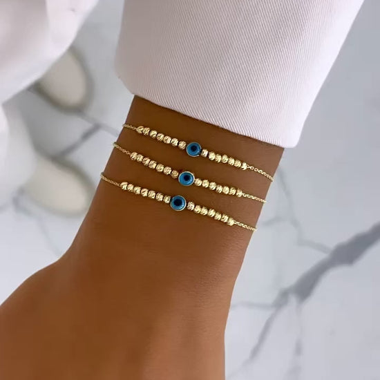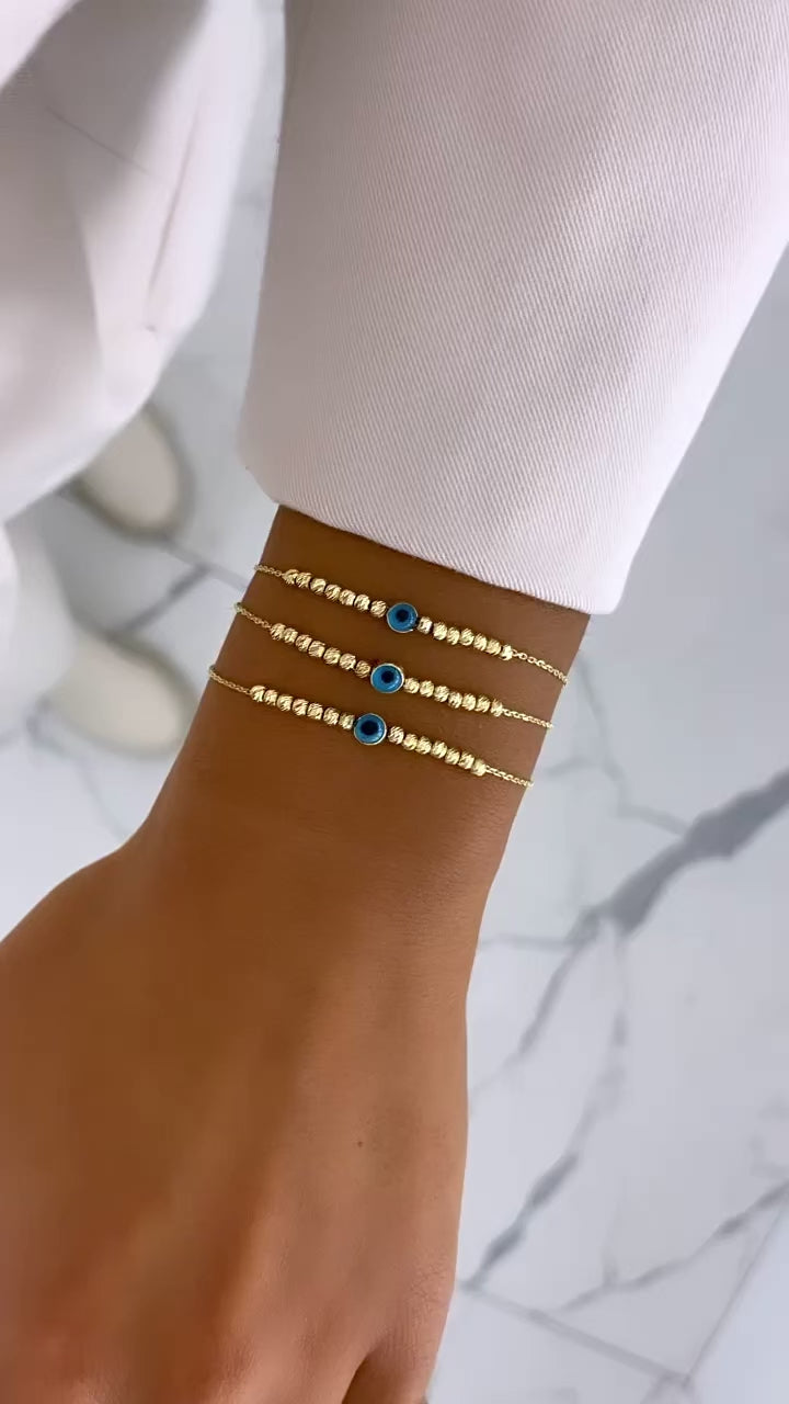 das feine Dorika Armband mit einem blauen Nazar Auge.