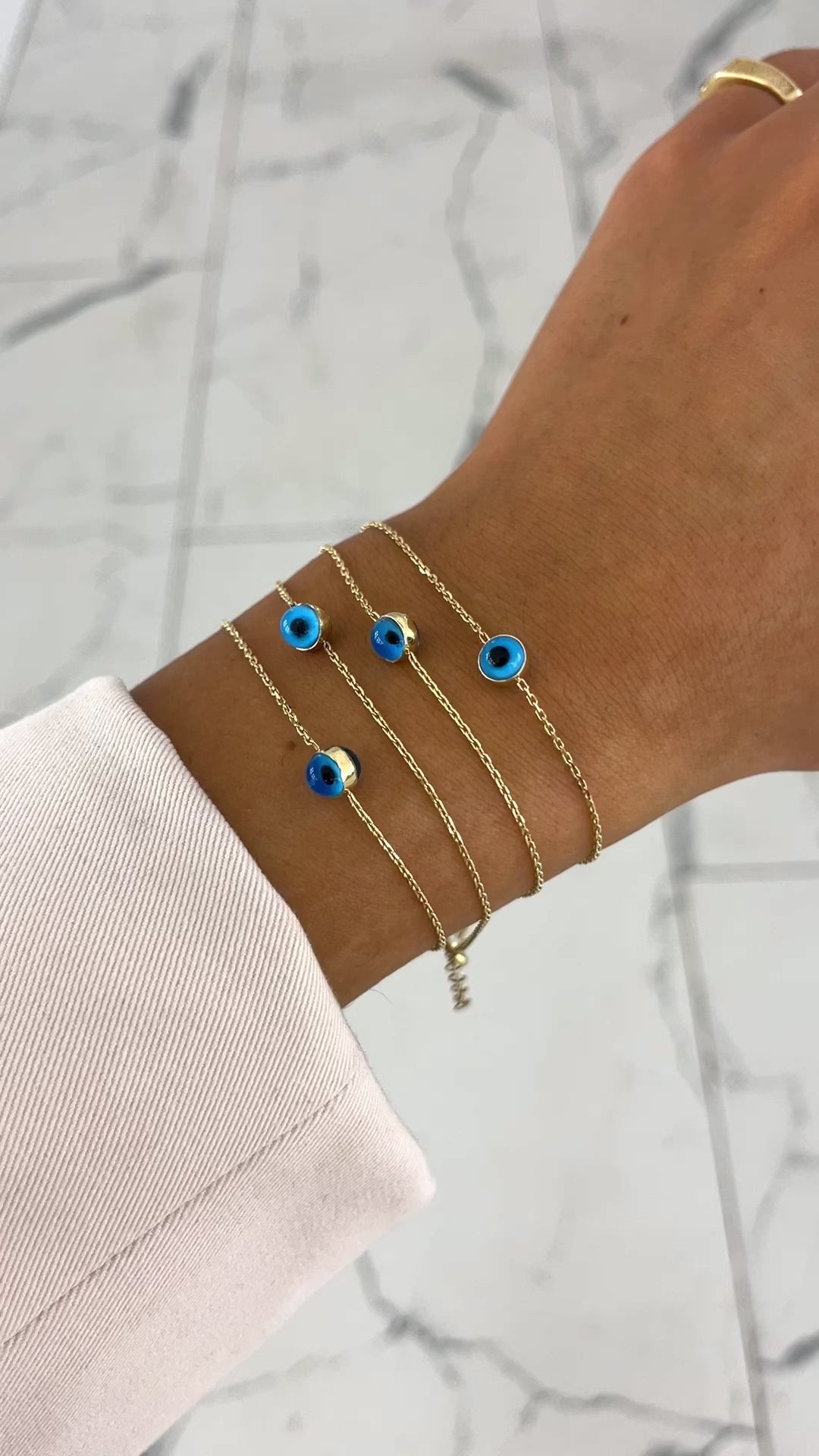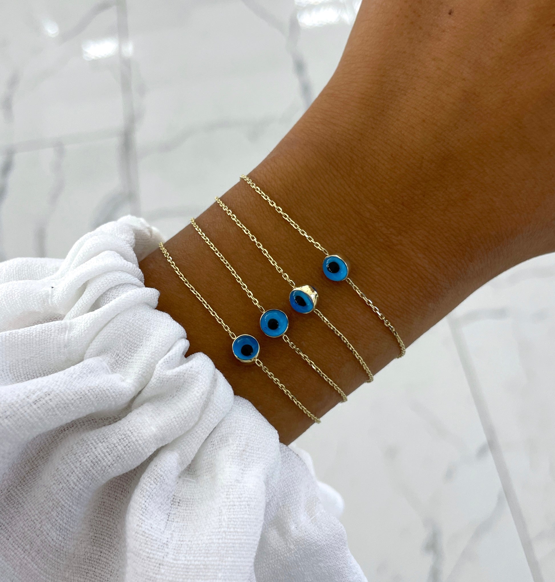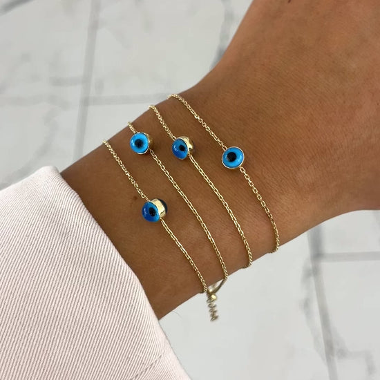 Das Blue Eye Basic Armband ist ein zeitlos klassischer Blickfang: Dank seines minimalistischen Designs aus 585er-Gelbgold und einem auffälligen Nazar Auge hat das Modell eine edle Eleganz.