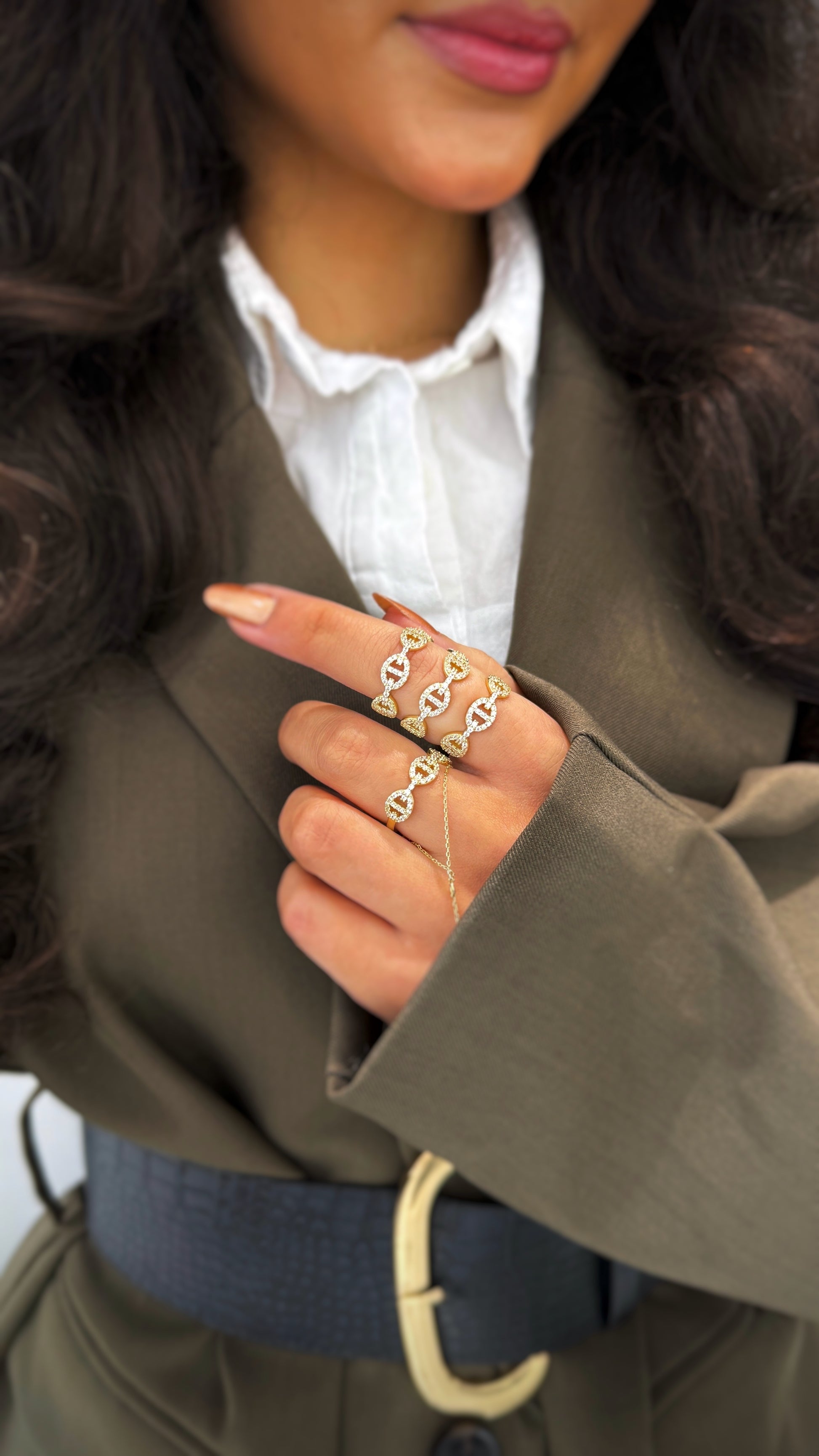 Das brillante Funkeln der Steine sorgt für eine auffällige, luxuriöse Ausstrahlung, ohne dabei an Eleganz zu verlieren. Ob als stilvoller Begleiter im Alltag oder als strahlender Akzent zu besonderen Anlässen – dieser Ring setzt ein klares Fashion-Statement.