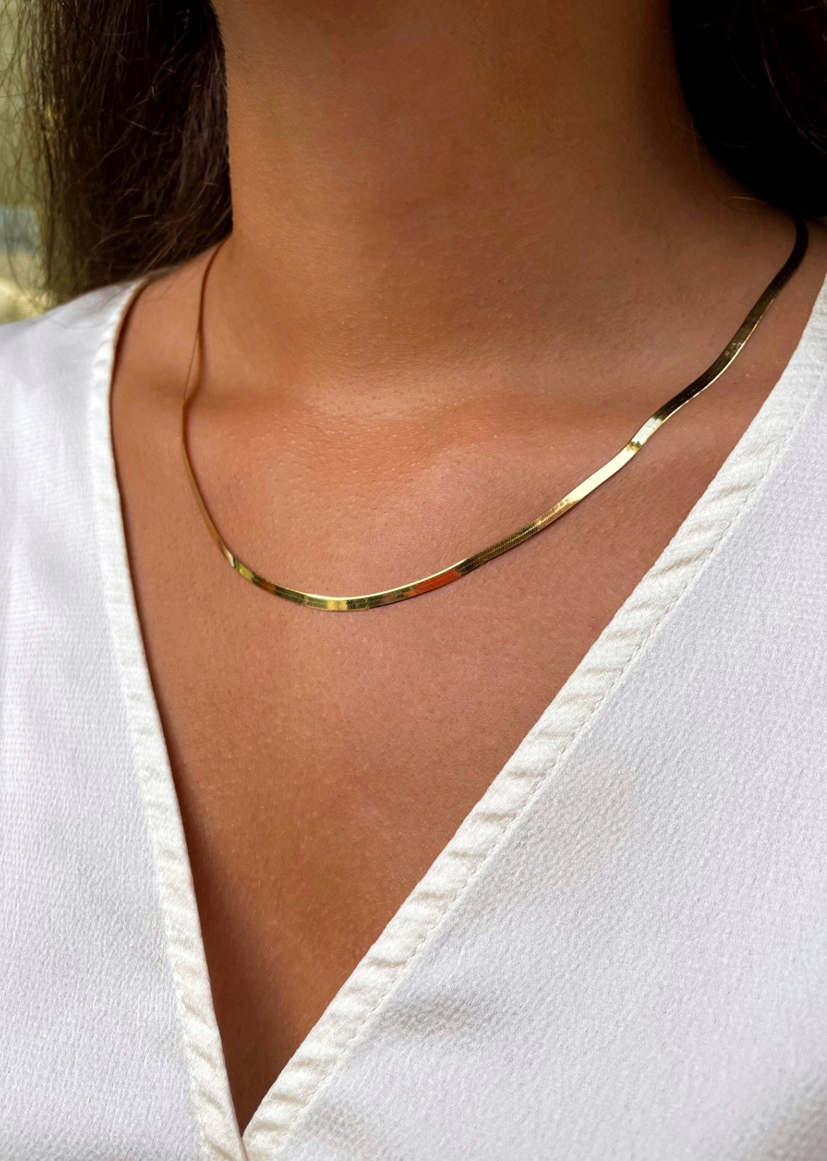 Zarte, flache Kette, die sich wunderbar an den Hals anschmiegt.