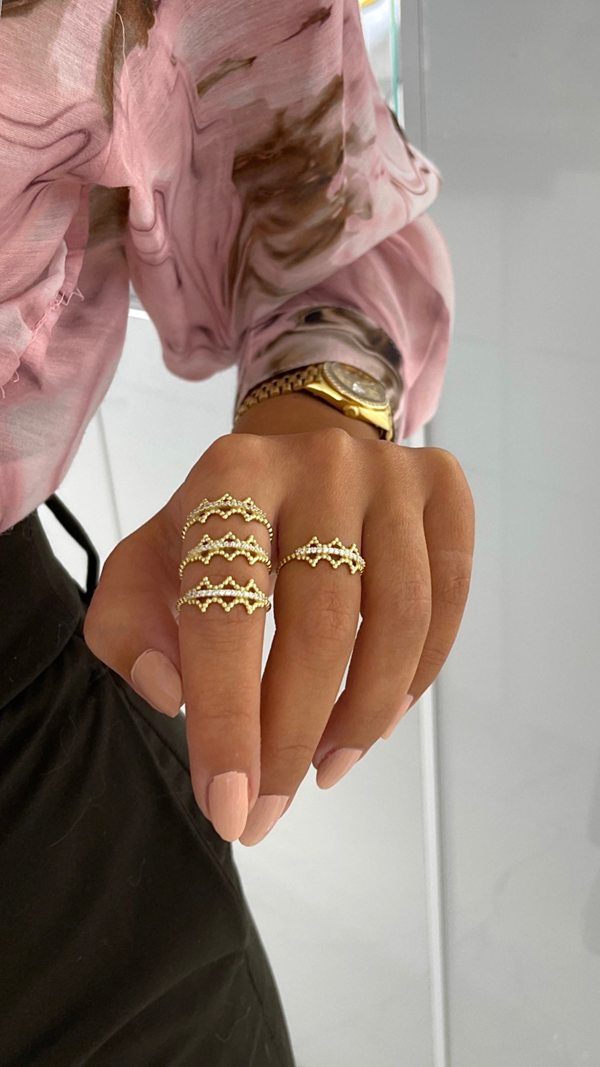 Der Daisy Ring ist aus 585er Gelbgold hergestellt und verfügt über ein neues Design mit kleinen Kügelchen. Gefertigt wurde er mit aufwendiger Handarbeit und ausgewählte Steinchen, was ihn zu einem einzigartigen Schmuckstück macht.