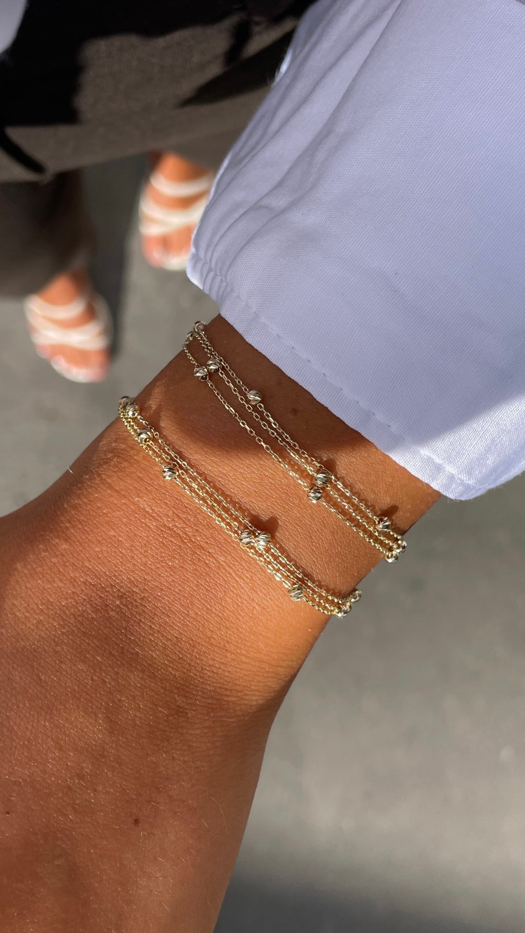 Das Dorika Tria Armband ist aus hochwertigem 585er Gelbgold gefertigt und besticht durch seine dezente und elegante Optik. Eine perfekte Ergänzung für jede Schmucksammlung und ein zeitloses Accessoire, das fachmännisch hergestellt wurde. Neu im Shop und ein Muss für jeden, der klassische Schönheit schätzt.