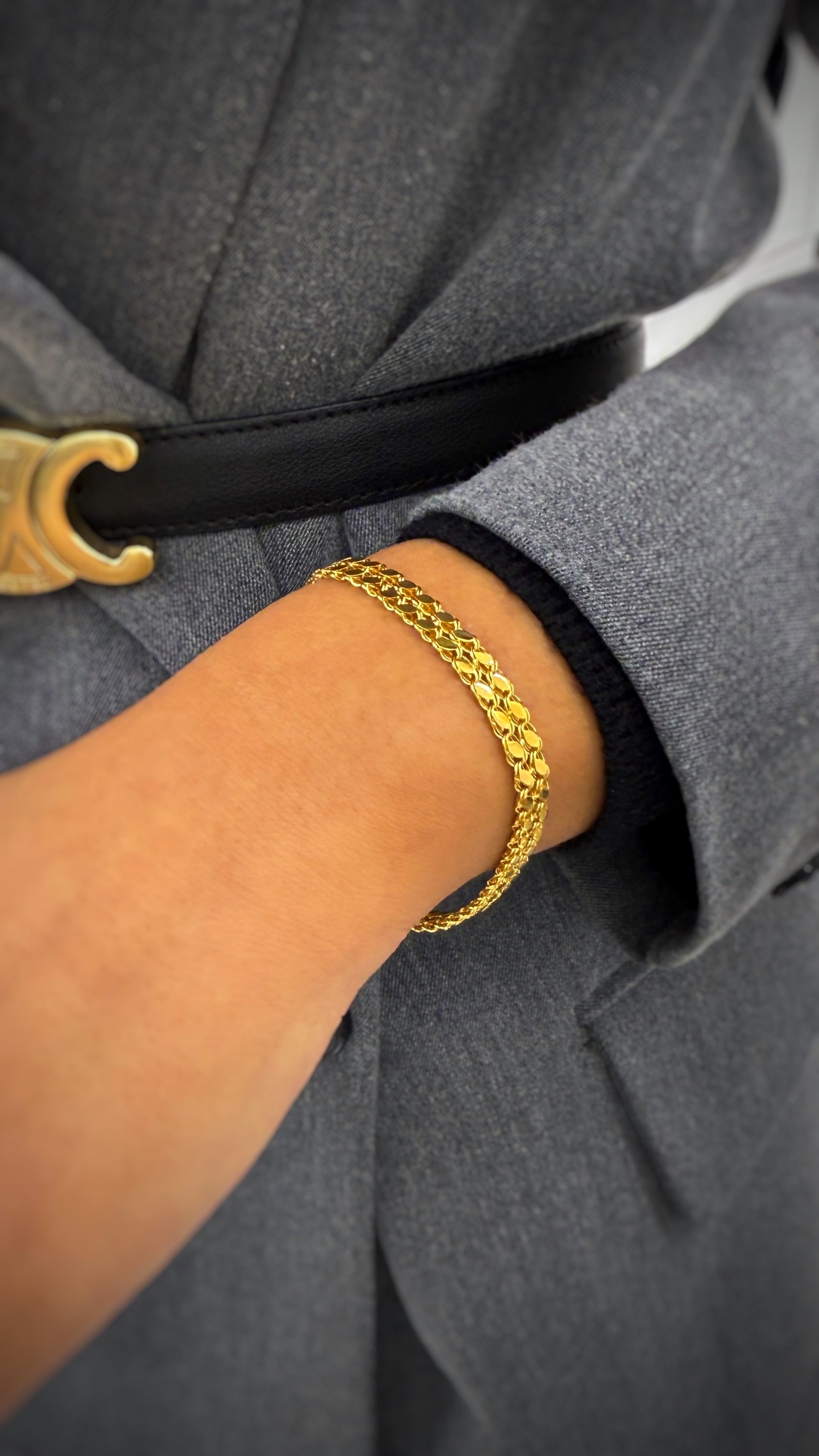 Halte dein Outfit mit dem Double Pullu Armband im traditionellen Design auf einem neuen Level! Das Armband besteht aus hochwertigem 14 Karat Gelbgold und ist neu im Sortiment. Mit dem doppelten Pullu verleihst du deinem Look etwas Besonderes.