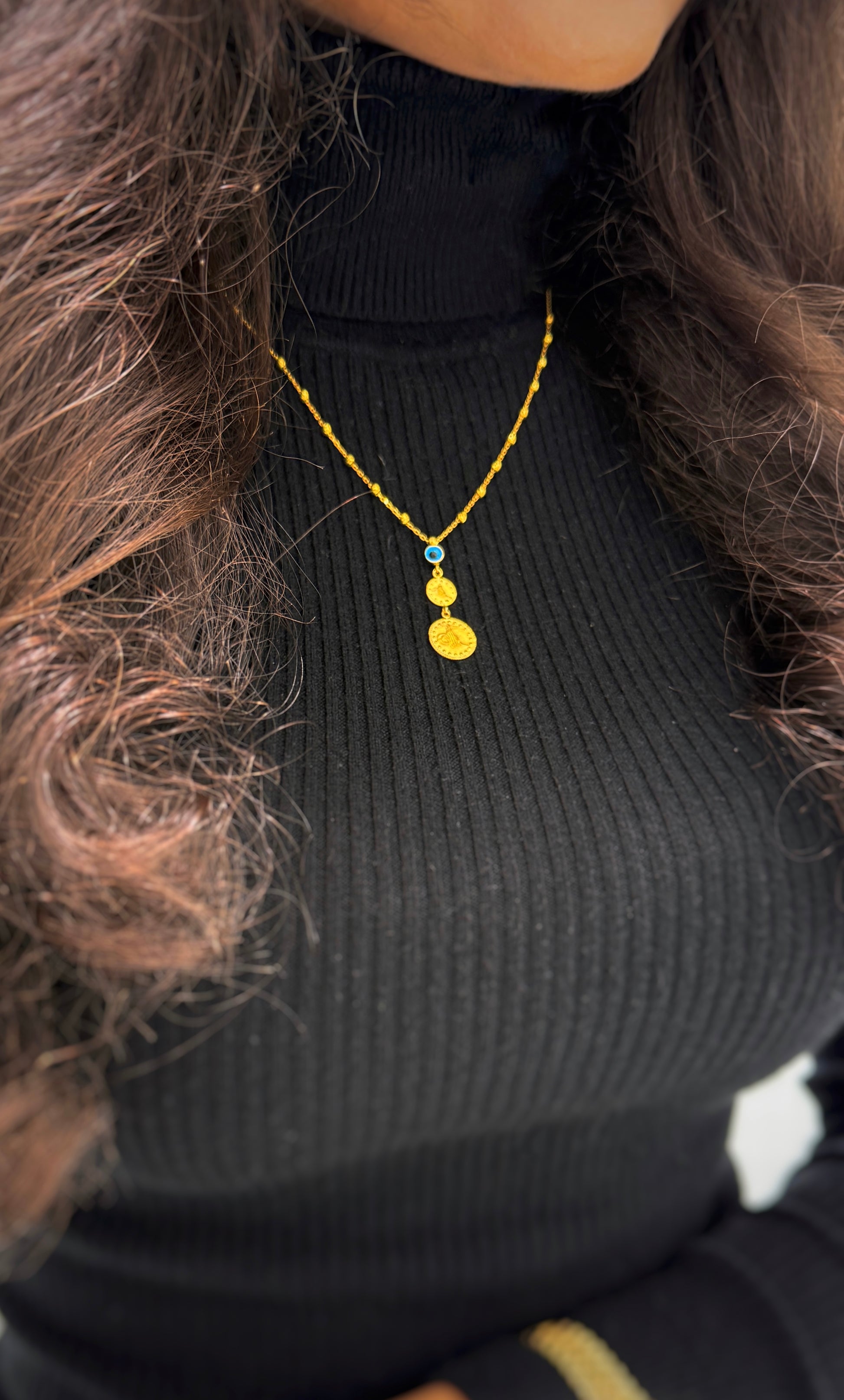 Double Tugra Naz ist eine atemberaubende Halskette aus 585er Gelbgold. Das perfekte Accessoire für jeden Tag und jeden Anlass. Erwecken Sie Ihren inneren Luxus mit Double Tugra Naz.
