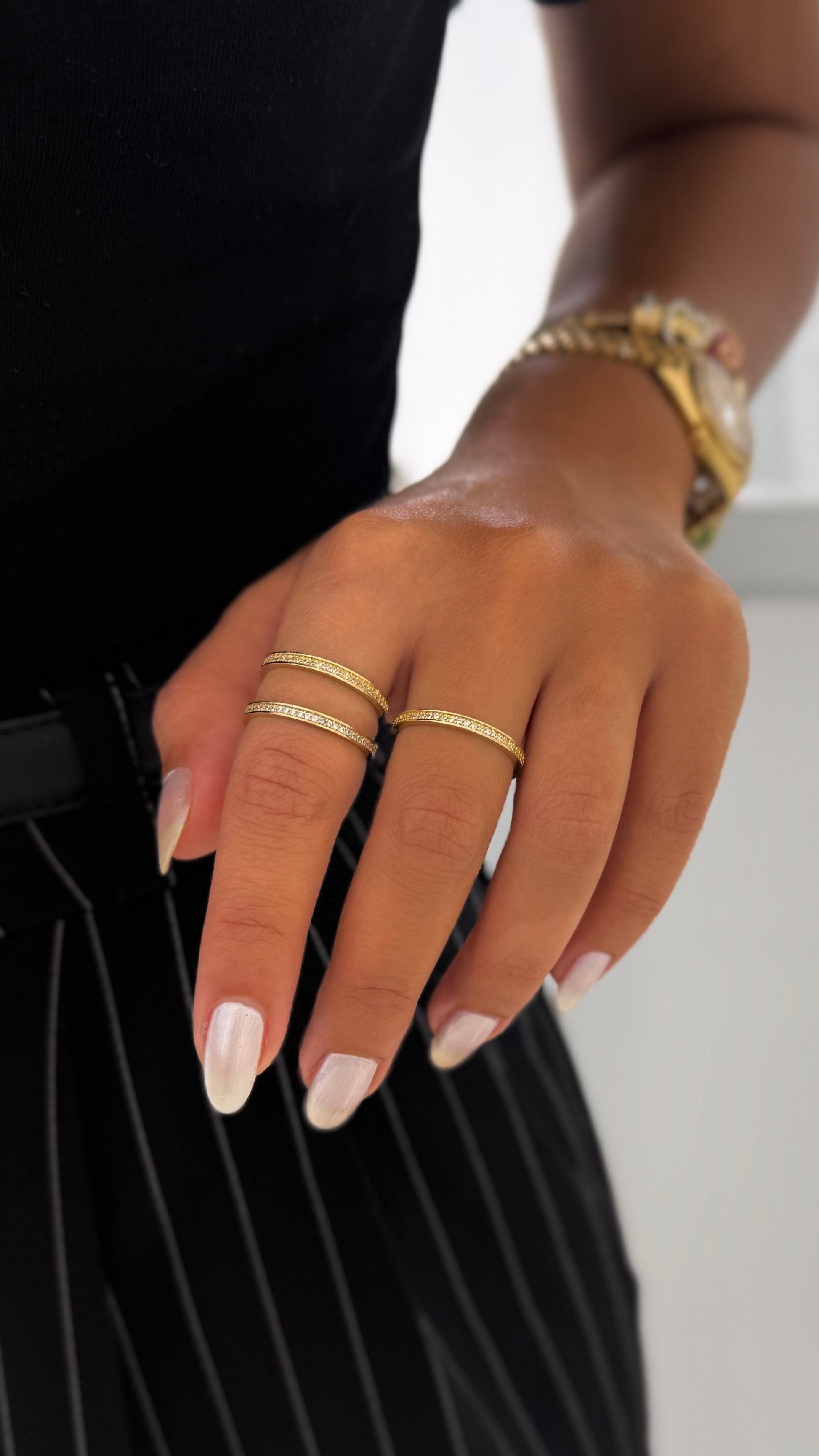 Diese Ebedi Parıltı Ring ist aus 14 Karat Gelbgold gefertigt und vollständig mit funkelnden Steinchen besetzt. Damit ist er nicht nur ein zeitloses Schmuckstück, sondern auch ein echter Blickfang. Perfekt für alle, die gerne luxuriöse Details tragen.