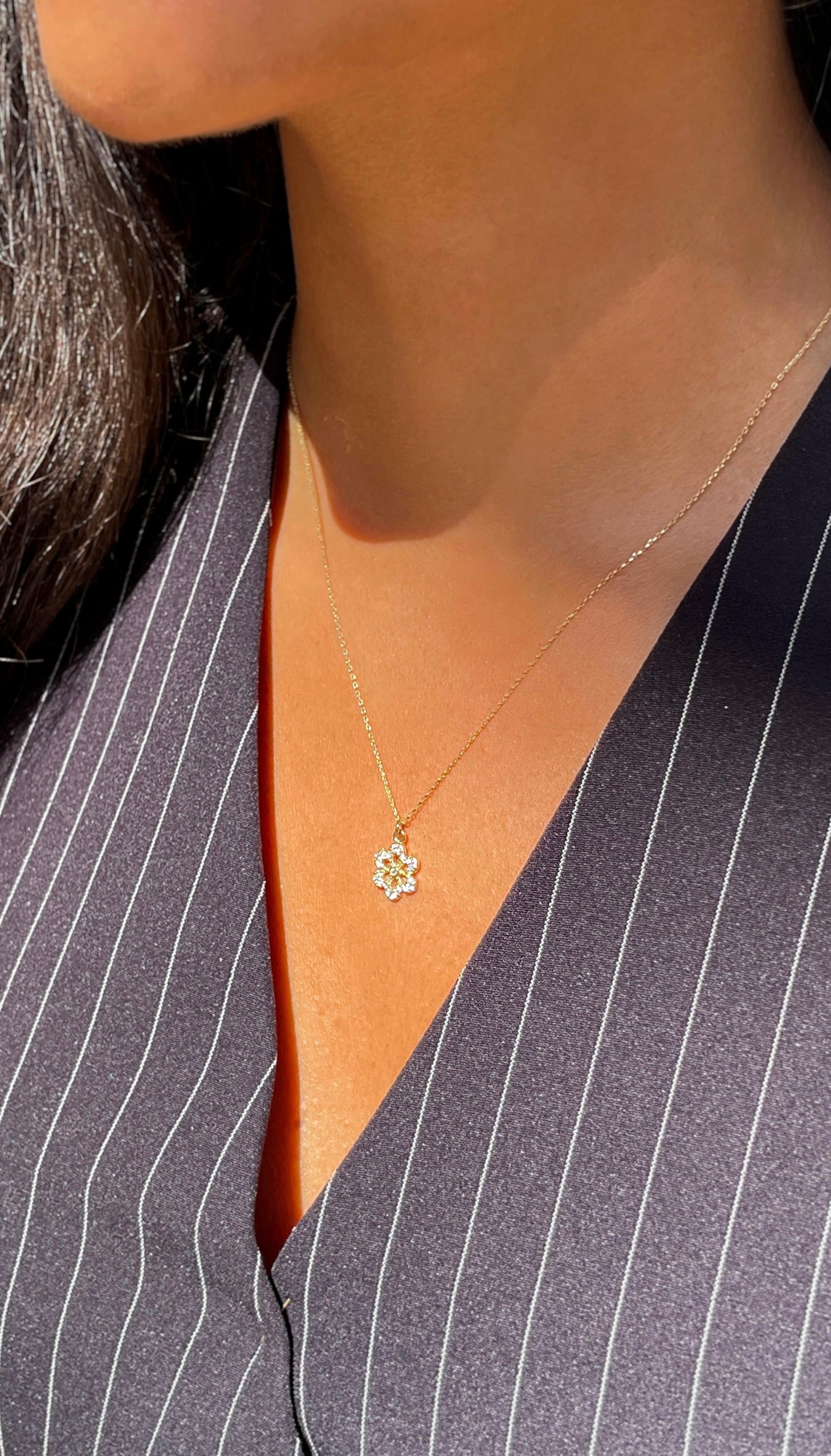 Erzähle deine eigene Eylül Masali mit dieser funkelnden Halskette aus 585er Gelbgold. Mit Verzierungen aus glitzernden Steinen ist sie perfekt für die Herbstsaison. Eine einzigartige Ergänzung für jeden Schmuckliebhaber.