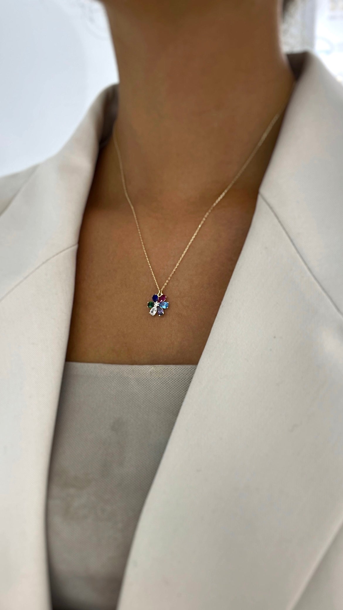 Das exklusive FİORE Collier ist aus 585er Gelbgold gefertigt und besticht durch eine charmante Blume aus farbigen Blüten. Ein luxuriöses Accessoire, das jedes Outfit aufwertet!