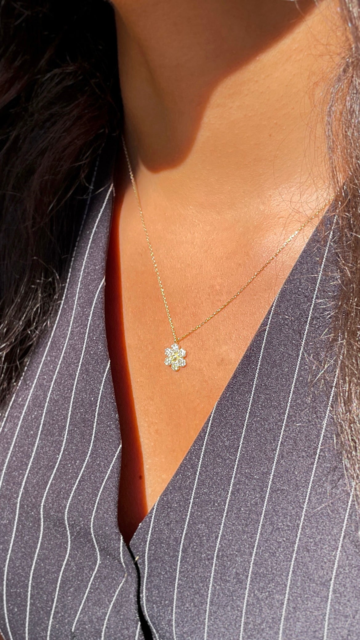 "Die wunderschöne Flora Halskette ist ein Must-Have für alle Blumenliebhaber. Das filigrane Blumendesign aus 585er Gelbgold ist ein echter Hingucker und verleiht jedem Outfit eine dezente Eleganz. Perfekt für alle, die natürliche Schönheit schätzen."