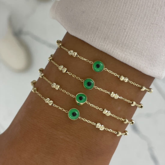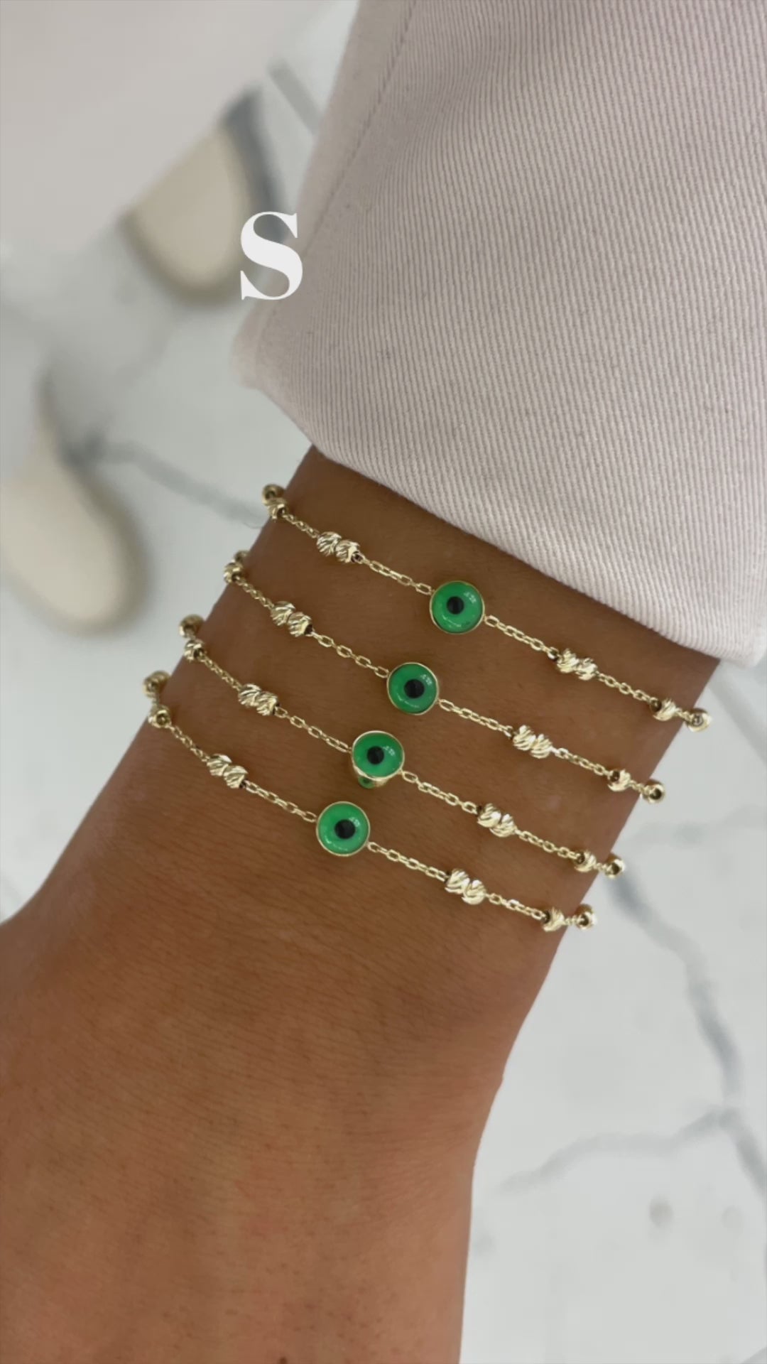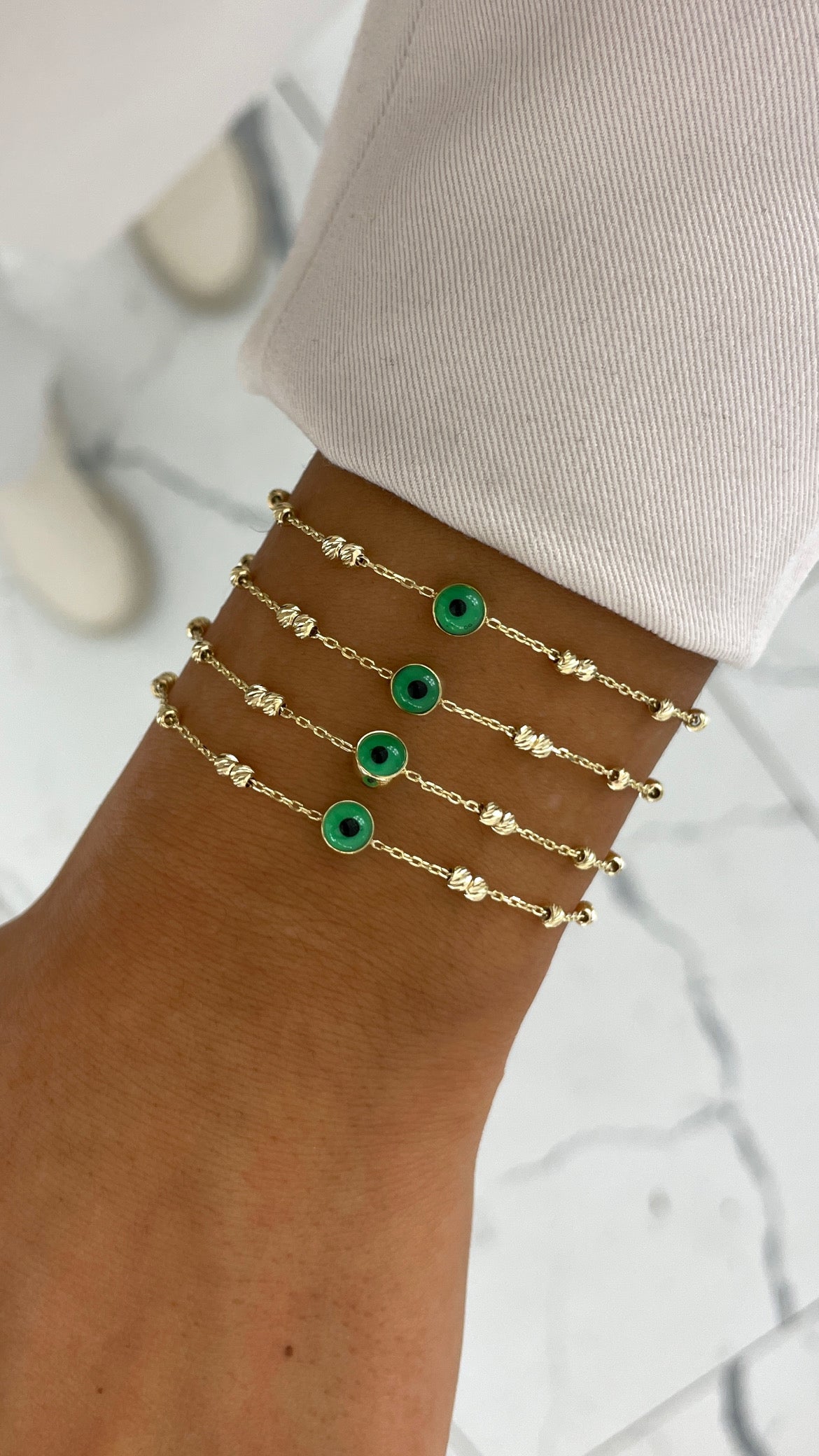 Green Eye Duo ist ein luxuriöses Armband handgefertigt aus 585er Gelbgold. Das perfekte Accessoire, das Sicherheit und Eleganz verleiht. Ein Geschenk für Sie selbst oder jemanden den du liebst.