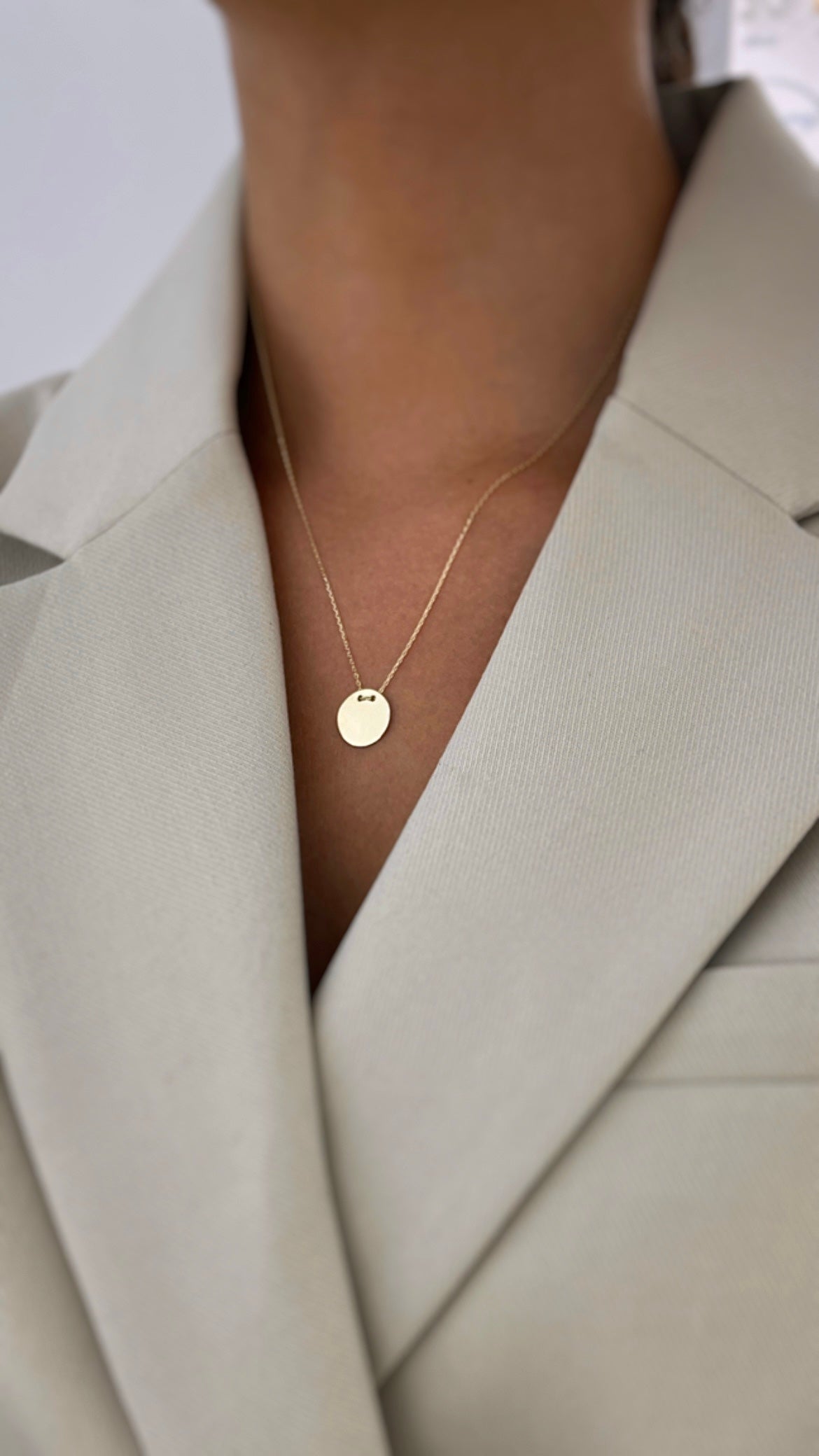 Initial ist ein stilvolles Collier in 585er Gelbgold. Es lässt sich veredeln und individualisieren, um ein einzigartiges Design zu kreieren. Seine schlichte Ästhetik ist für jeden Anlass geeignet.
