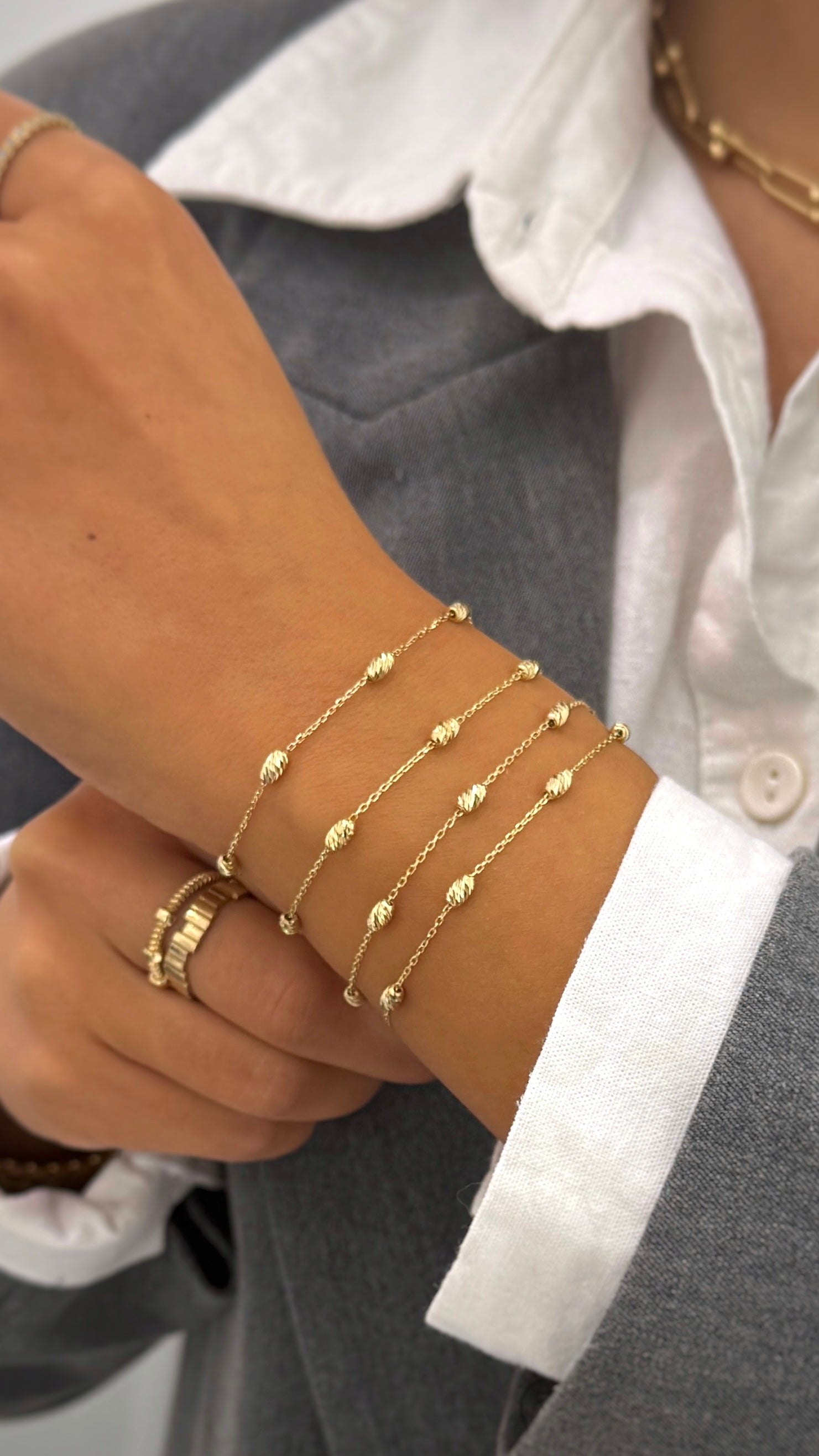 Das Jade Armband aus 585er Gelbgold ist der perfekte Begleiter für einen dezenten, aber stilvollen Auftritt. Sein dezentes Design lässt es funkeln und verleiht jedem Outfit eine elegante Note. Ein Must-Have für jeden Schmuckliebhaber.