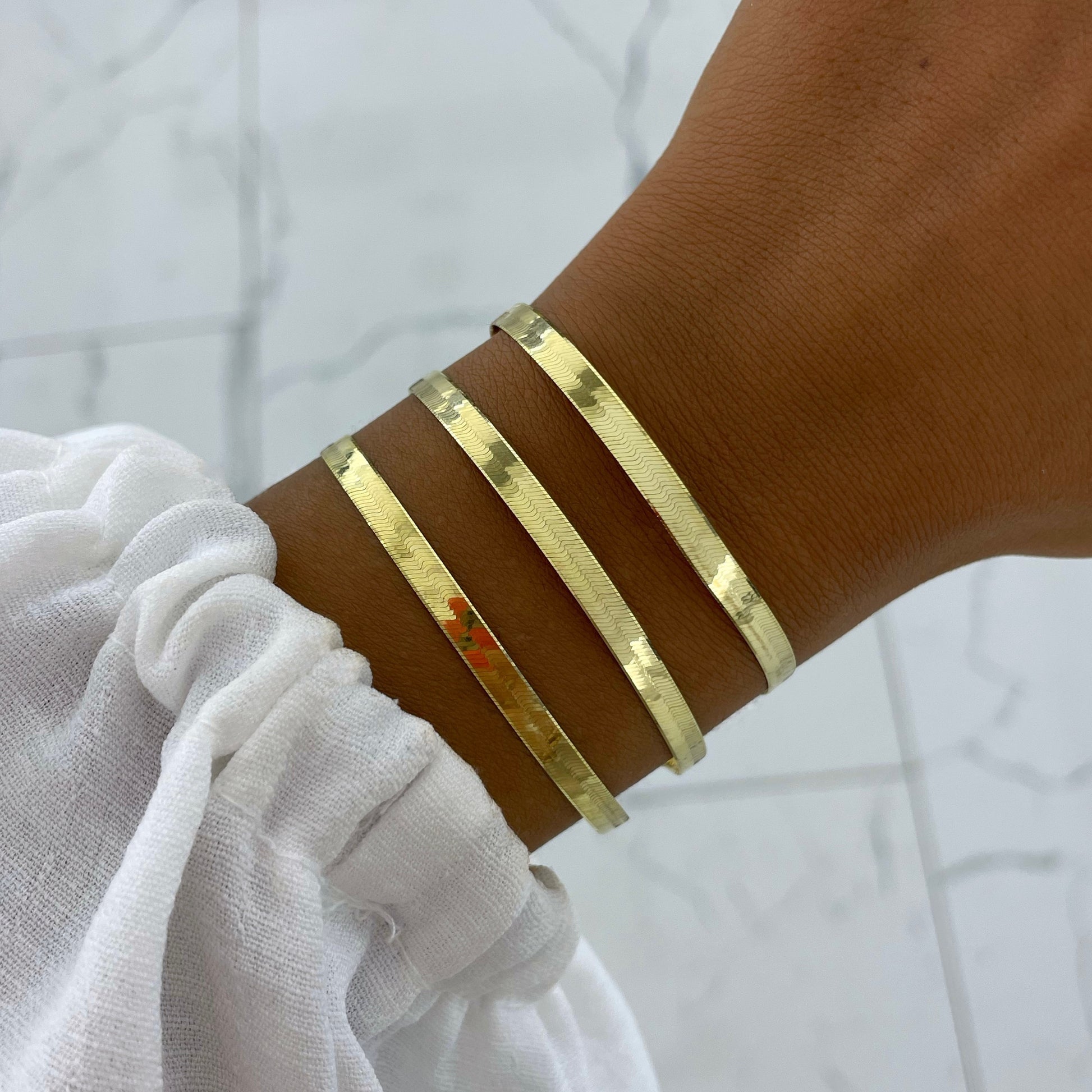 Zarte, flache Kette, die sich wunderbar an das handgelenk anschmiegt.
