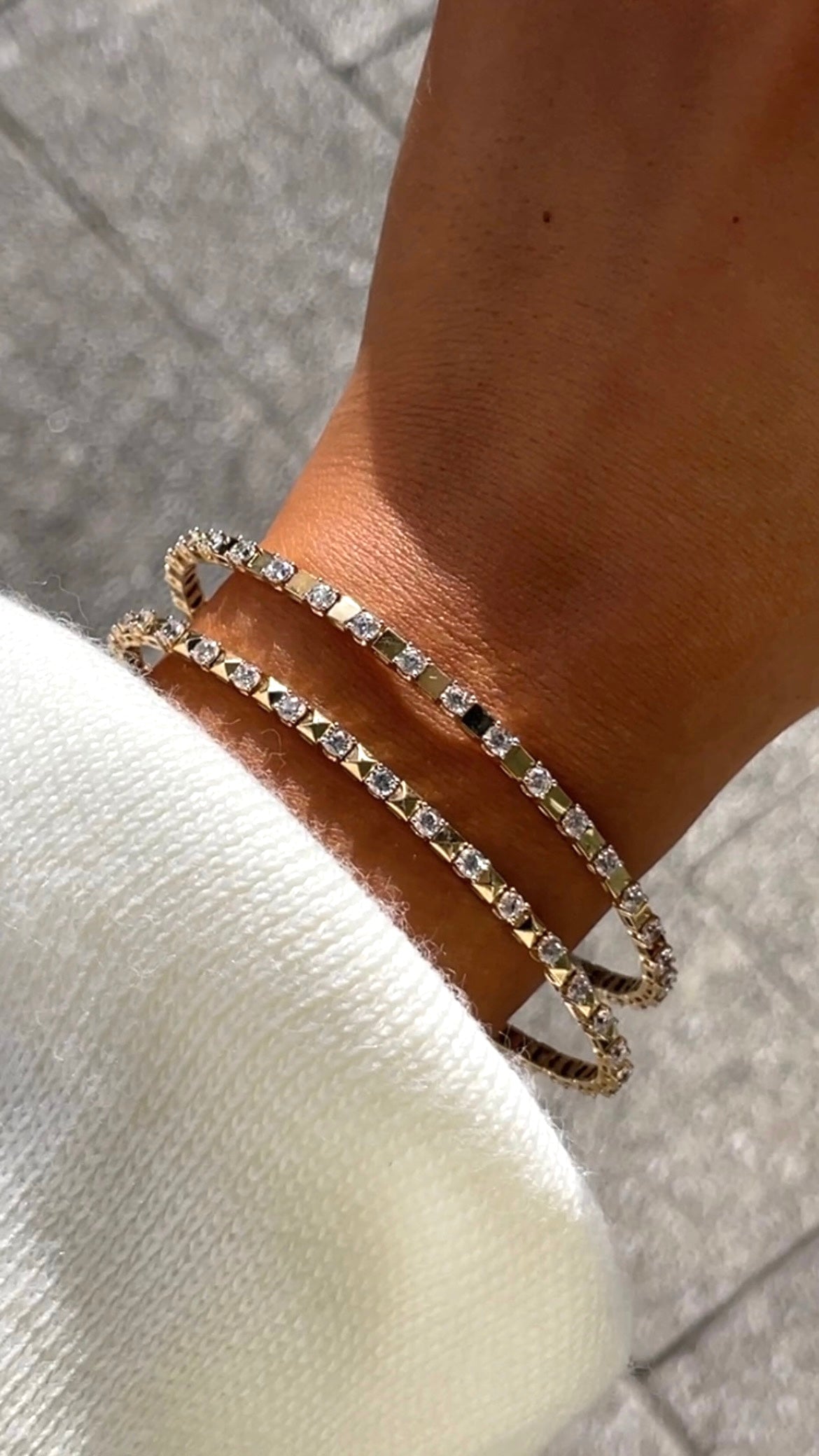 Le Manzara Armreifen, verziert mit funkelnden Zirkonia Steinchen und aus hochwertigem 585er Gelbgold gefertigt. Ein Must-Have für jeden stilbewussten Schmuckliebhaber. Lass dich verzaubern von der hochwertigen Qualität und dem einzigartigen Design. Der perfekte Begleiter für jeden Anlass!