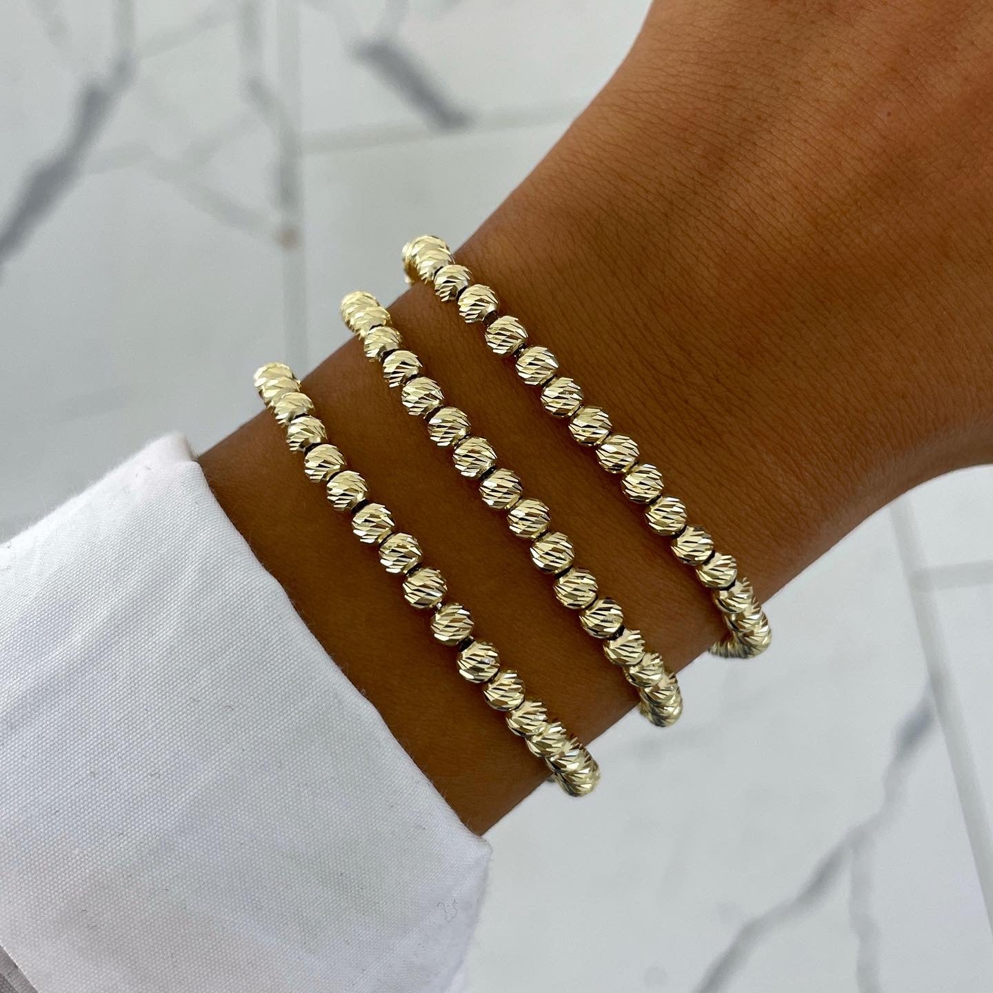 Mega Dorika ist ein luxuriöses Armband aus 585et Gelbgold mit einer einzigartigen Kombination aus 4 mm Dorika Kugeln. Es verleiht jedem Outfit einen luxuriösen Hauch von Eleganz.