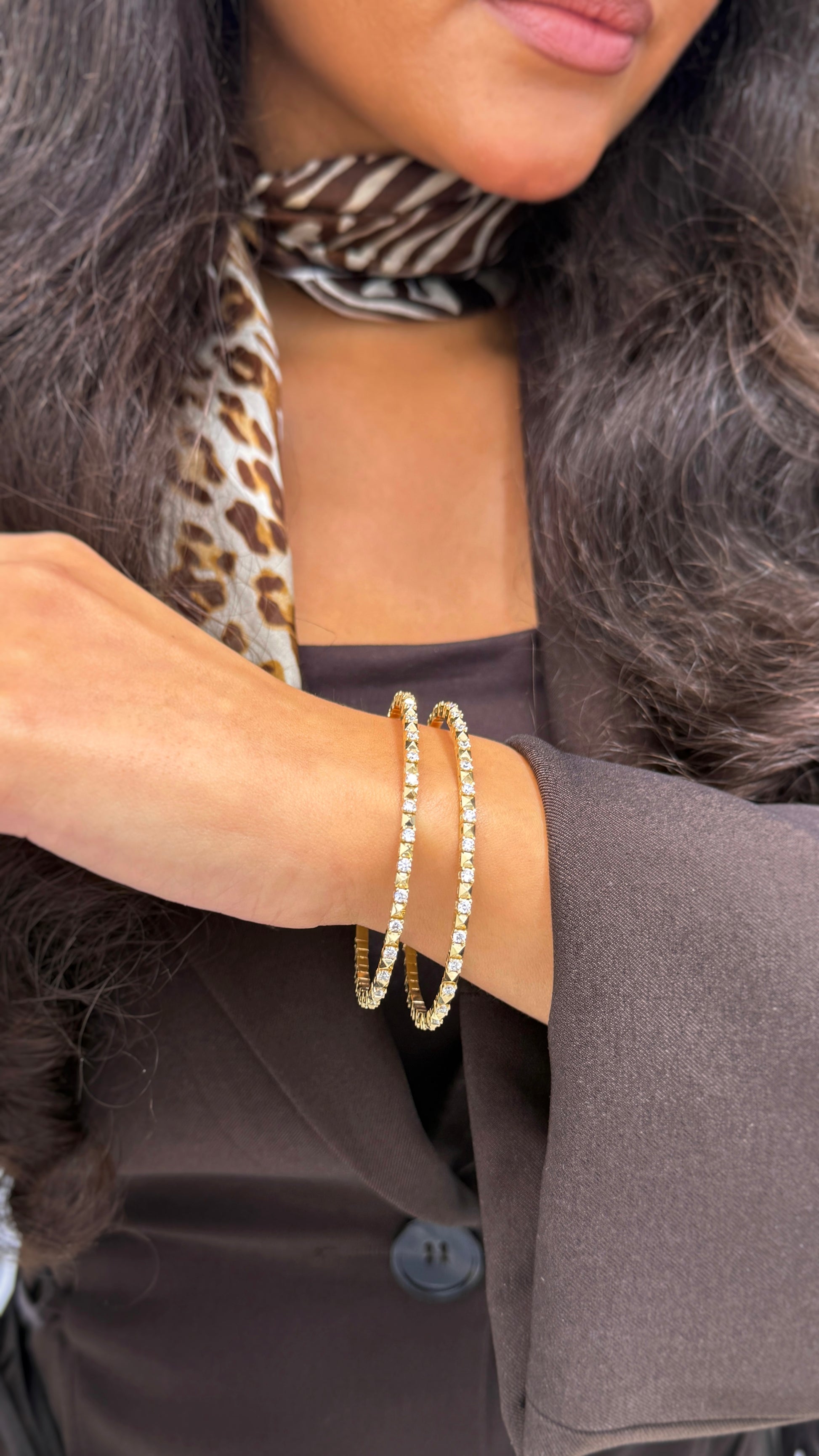 Die zarte Form trifft auf präzise gesetzte funkelnde Details – so entsteht ein Design, das gleichzeitig modern, edel und außergewöhnlich ist. Jeder Stein reflektiert das Licht auf eine subtile, aber beeindruckende Weise und verleiht dem Armreifen eine elegante Ausstrahlung, ohne aufdringlich zu wirken.