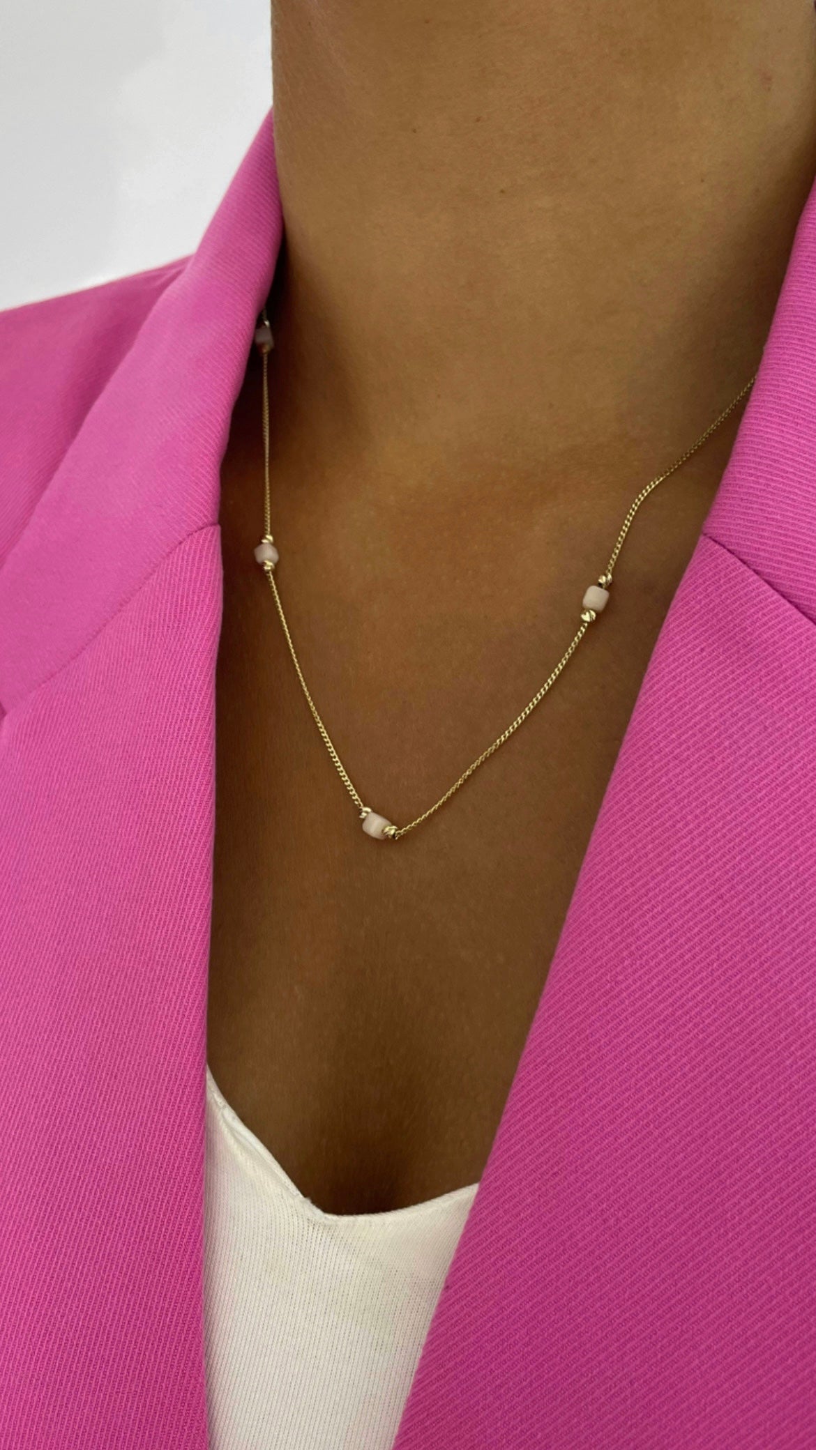 Details: Collier mit 7 nude farbenen Steinen und Dorika Kugeln