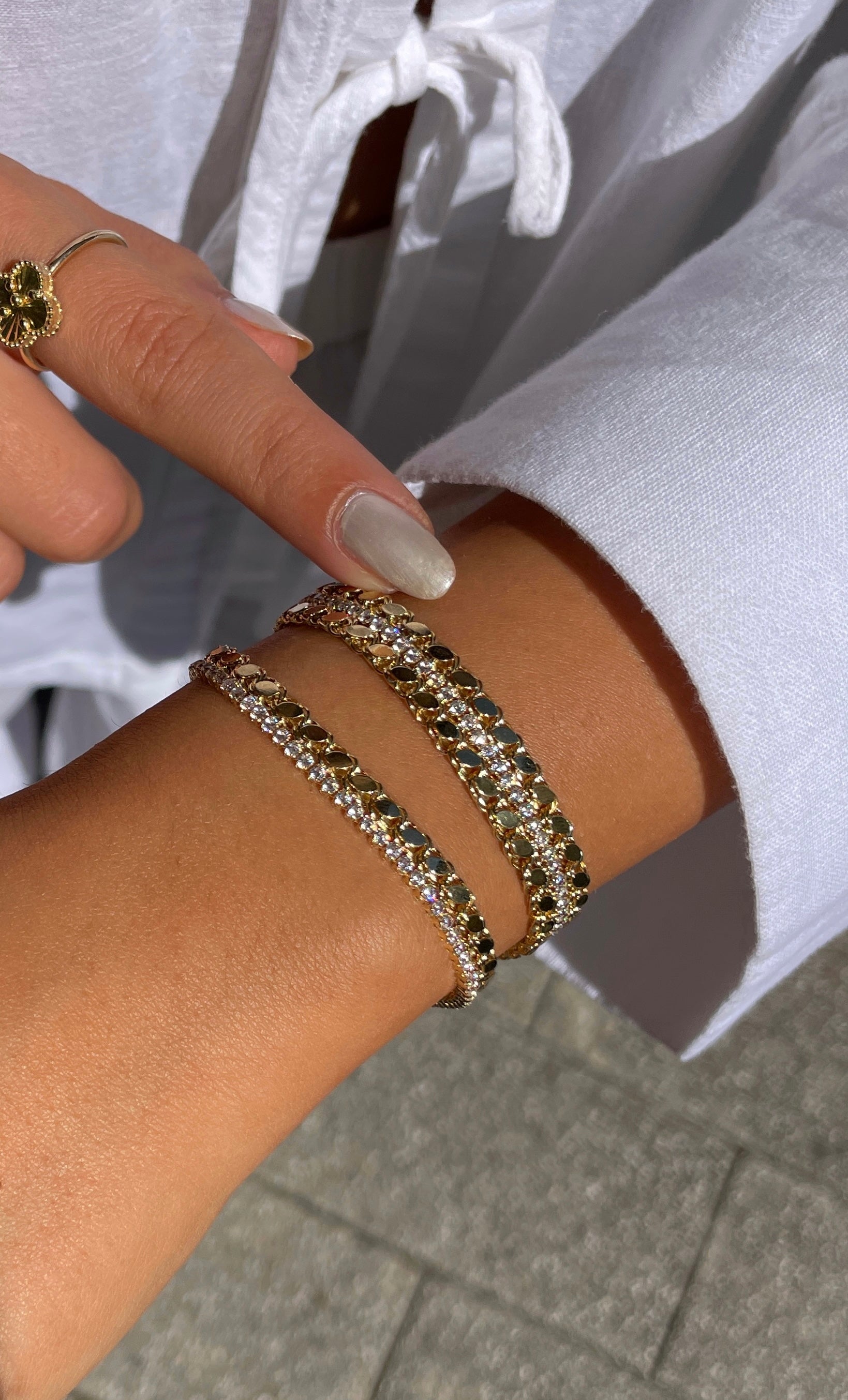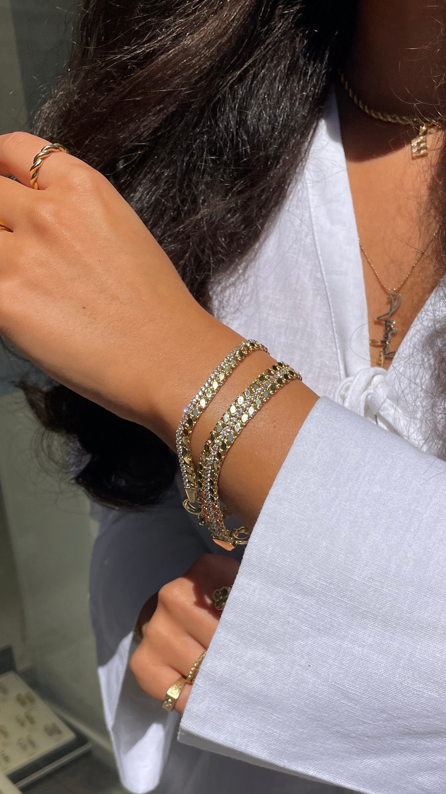 Dieses elegante Armband aus 14 Karat Gelbgold ist ein echter Blickfang. Die zarten Steinchen verleihen dem Armband einen Hauch von Glamour und machen es zu einem unverzichtbaren Accessoire für jeden Anlass. Tragen Sie das Pullu Yol Armband und ziehen Sie alle Blicke auf sich.