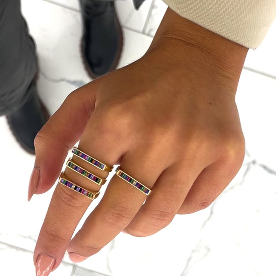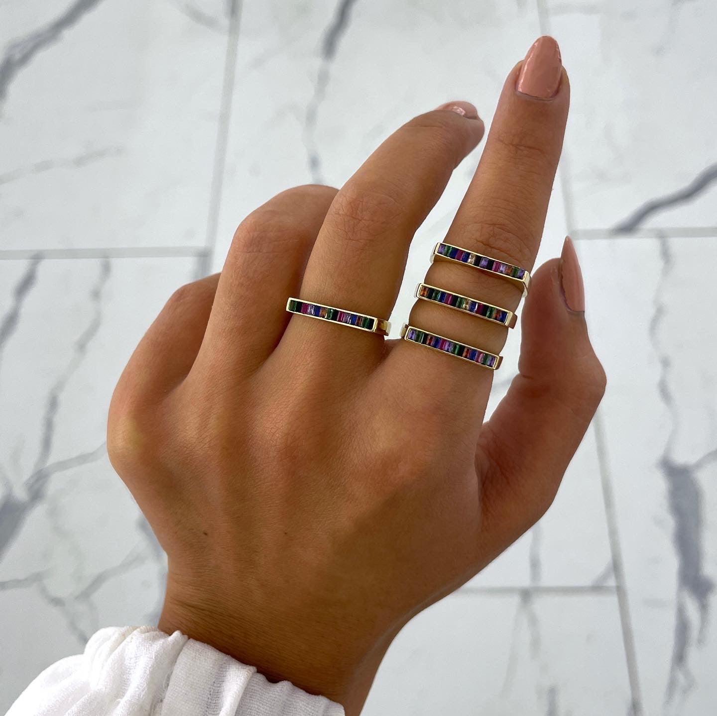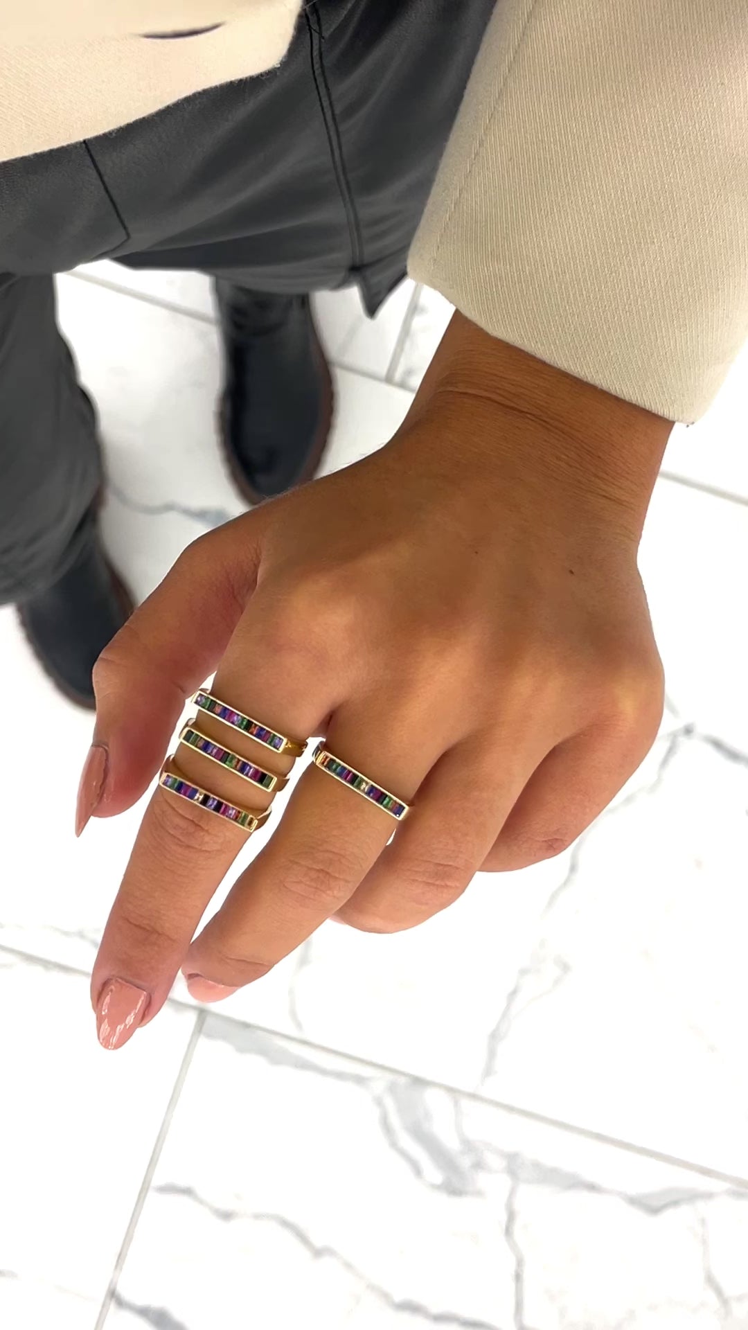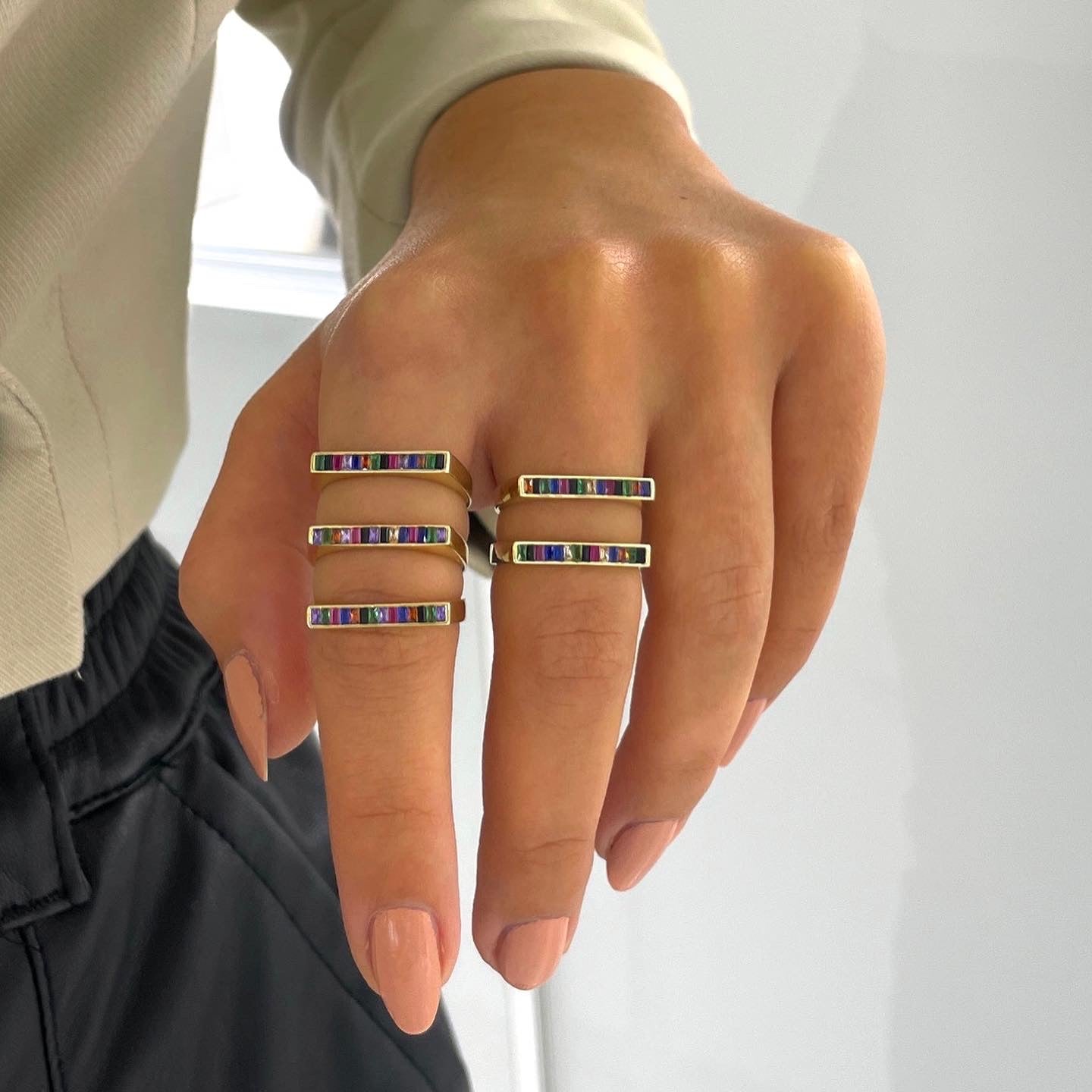 Mit diesem Rengarenk Line Ring erhalten Sie ein luxuriöses Accessoire aus 585er Gelbgold. Der Ring ist zudem mit verschiedenen bunten Steinchen besetzt und verleiht Ihnen einen besonderen Look. Der Ring ist langlebig und überzeugt durch seine hochwertige Qualität.