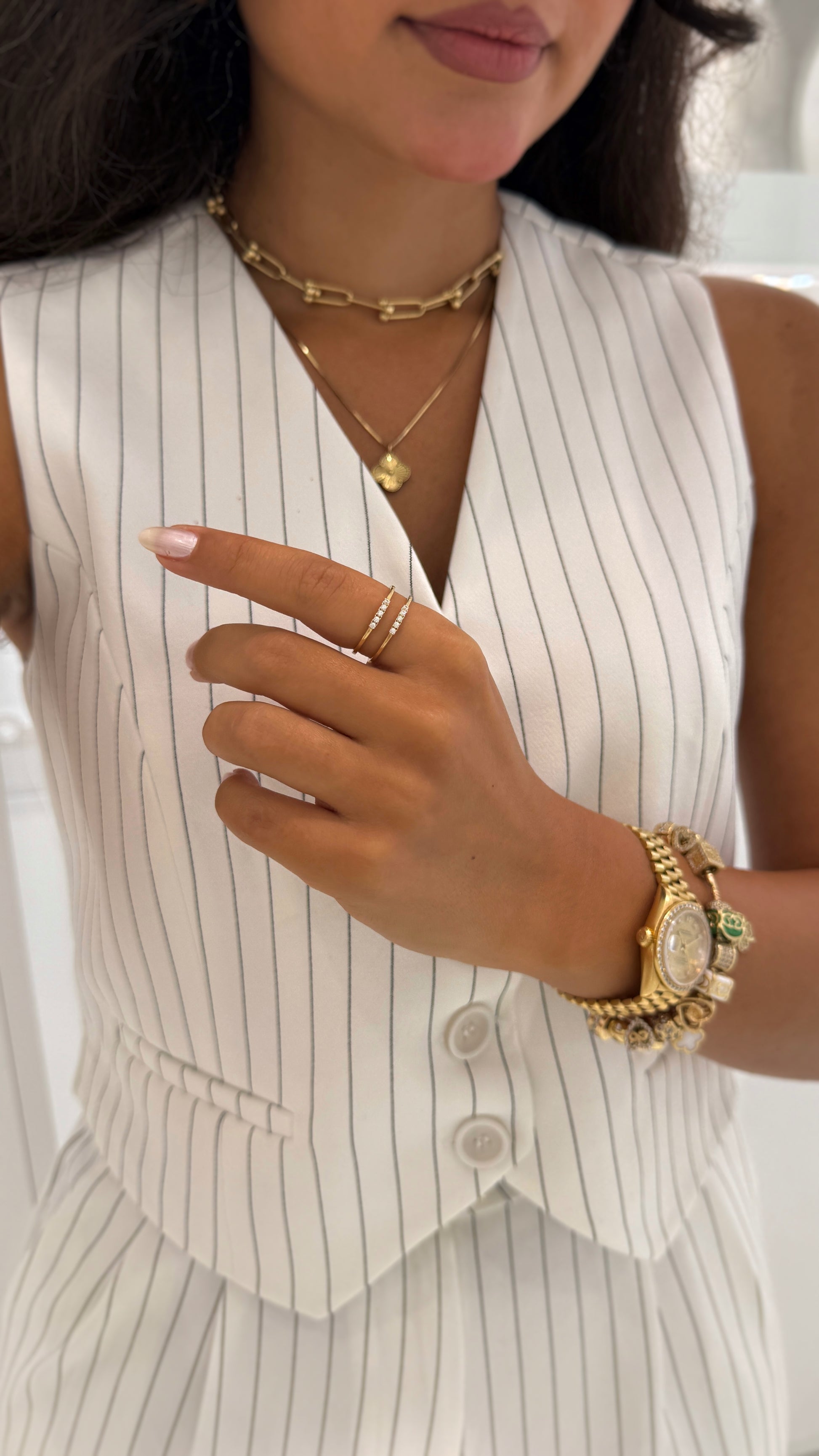 Die elegante Shiny Cinq' Ring besticht durch 5 funkelnde Zirkonia-Steine und ist aus hochwertigem 14 Karat Gelbgold gefertigt. Das zeitlose Design verleiht jedem Outfit einen dezenten und schicken Touch. Perfekt für jeden Anlass und eine wunderbare Ergänzung für jede Schmucksammlung.
