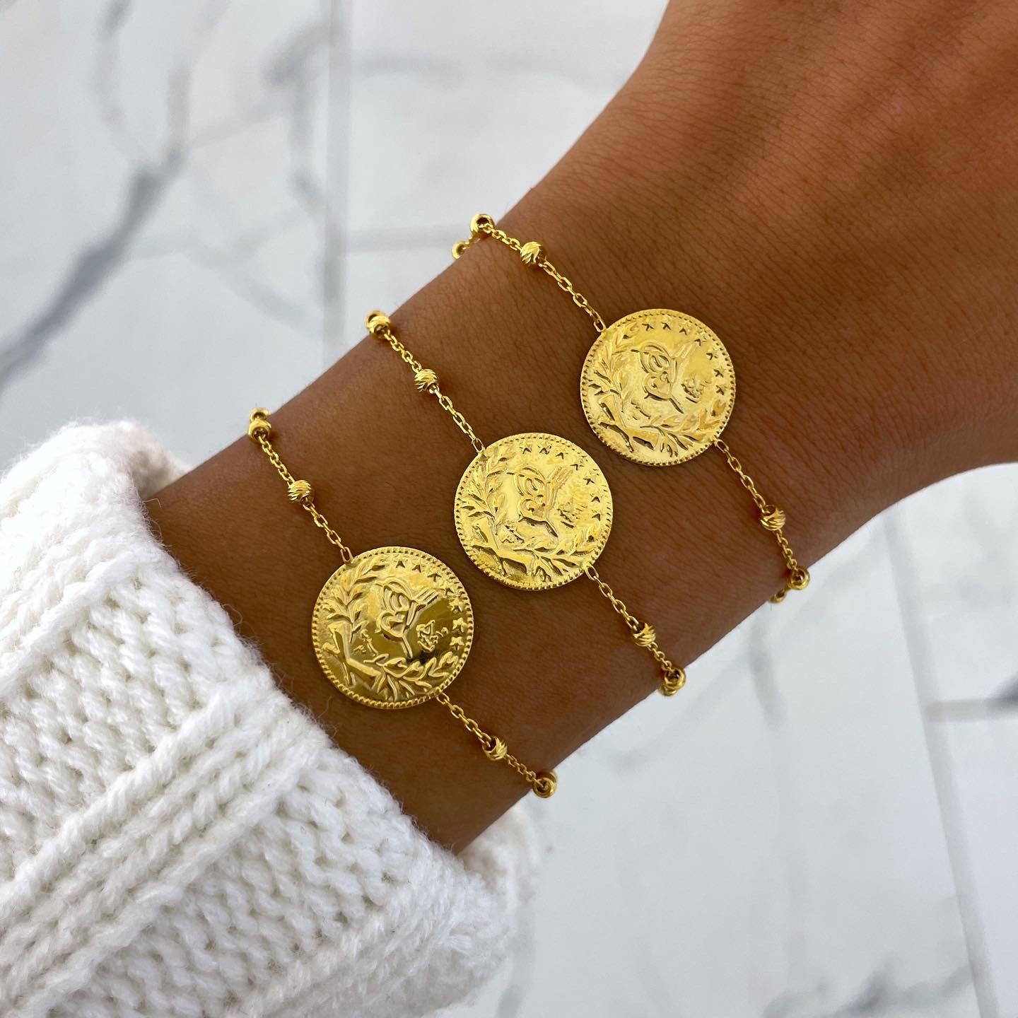Das Tugra Pare Armband aus 585er gelbgold ist ein schlichtes, aber dennoch elegantes Schmuckstück. Die Verzierung mit Dorika kugeln verleiht dem Armband eine besondere Note. Mit hochwertigem Material und zeitlosem Design ist es ein perfektes Accessoire für jeden Anlass. Genießen Sie die zeitlose Schönheit dieses Armbands.