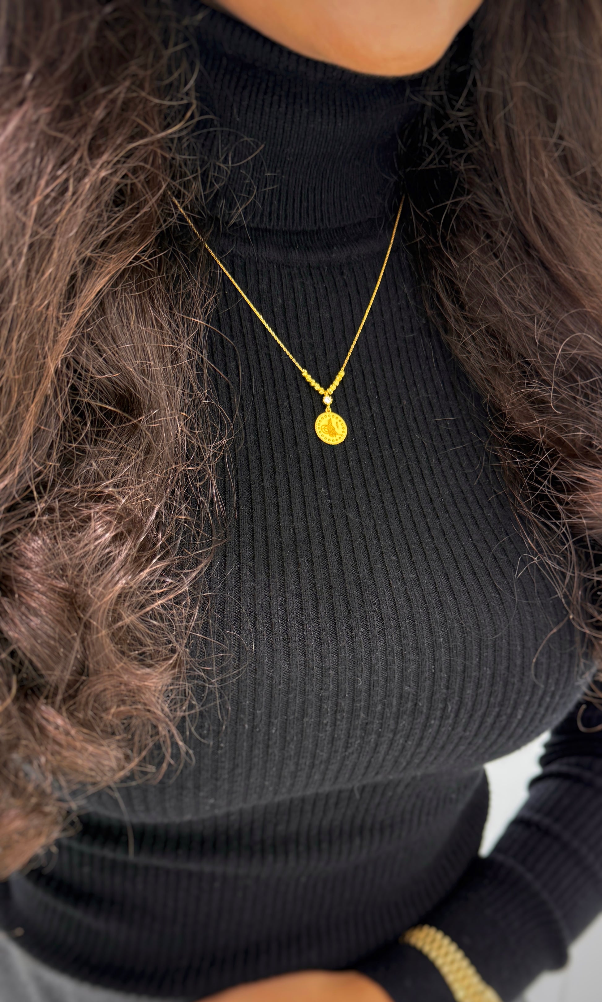 Die Tugra Serra Halskette aus edlem 585er Gelbgold vereint traditionelle und moderne Elemente. Mit ihrem Deluxe-Design ist sie ein wahrer Blickfang und verleiht jedem Outfit einen luxuriösen Touch. Die perfekte Wahl für anspruchsvolle Modekenner."