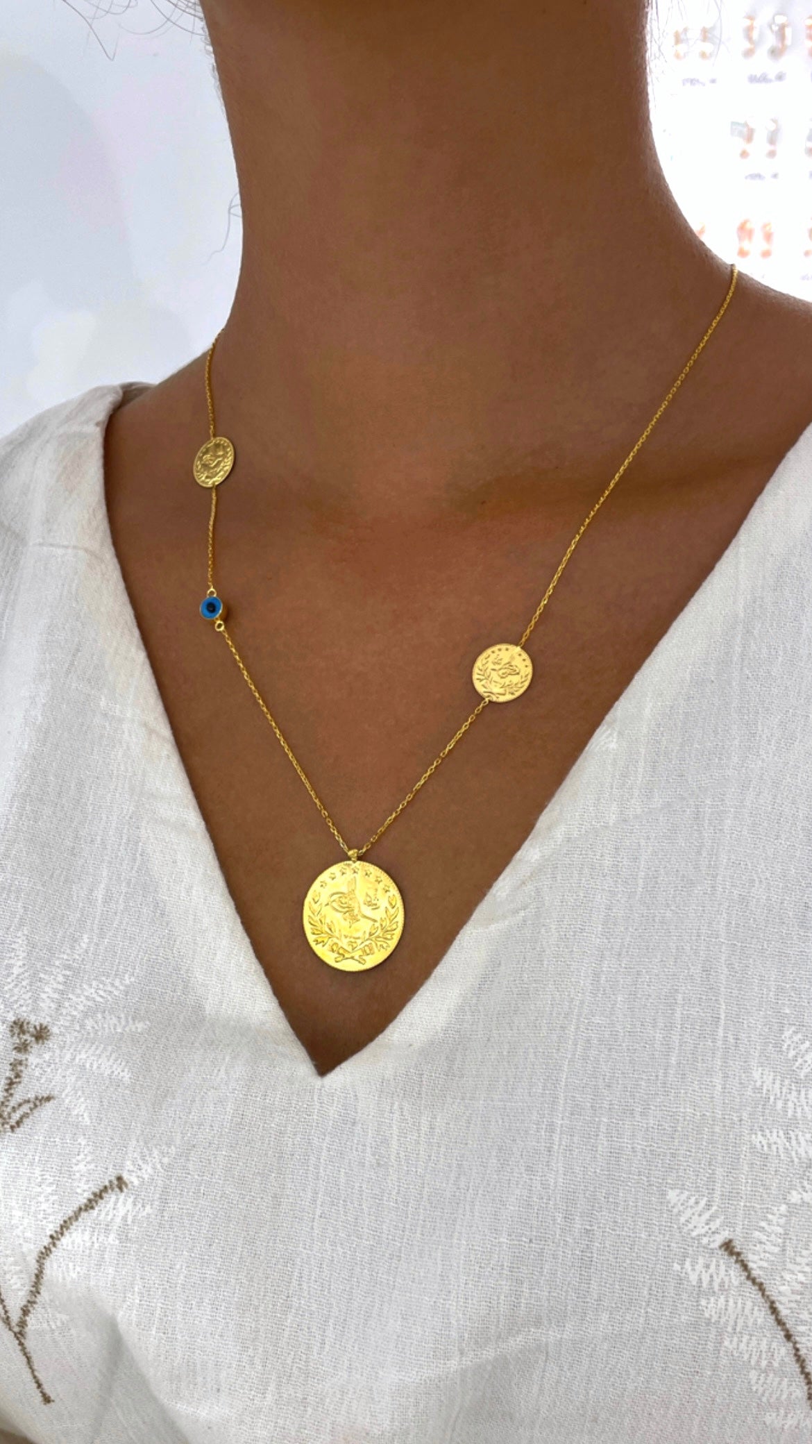 Tugra two side Nazar bietet ein modernes und einzigartiges Design. Es besteht aus 585er Gelbgold und ist ein perfektes Accessoire für jeden Anlass. Es wird durch seine einzigartiges Design ein wahrer Hingucker sein.