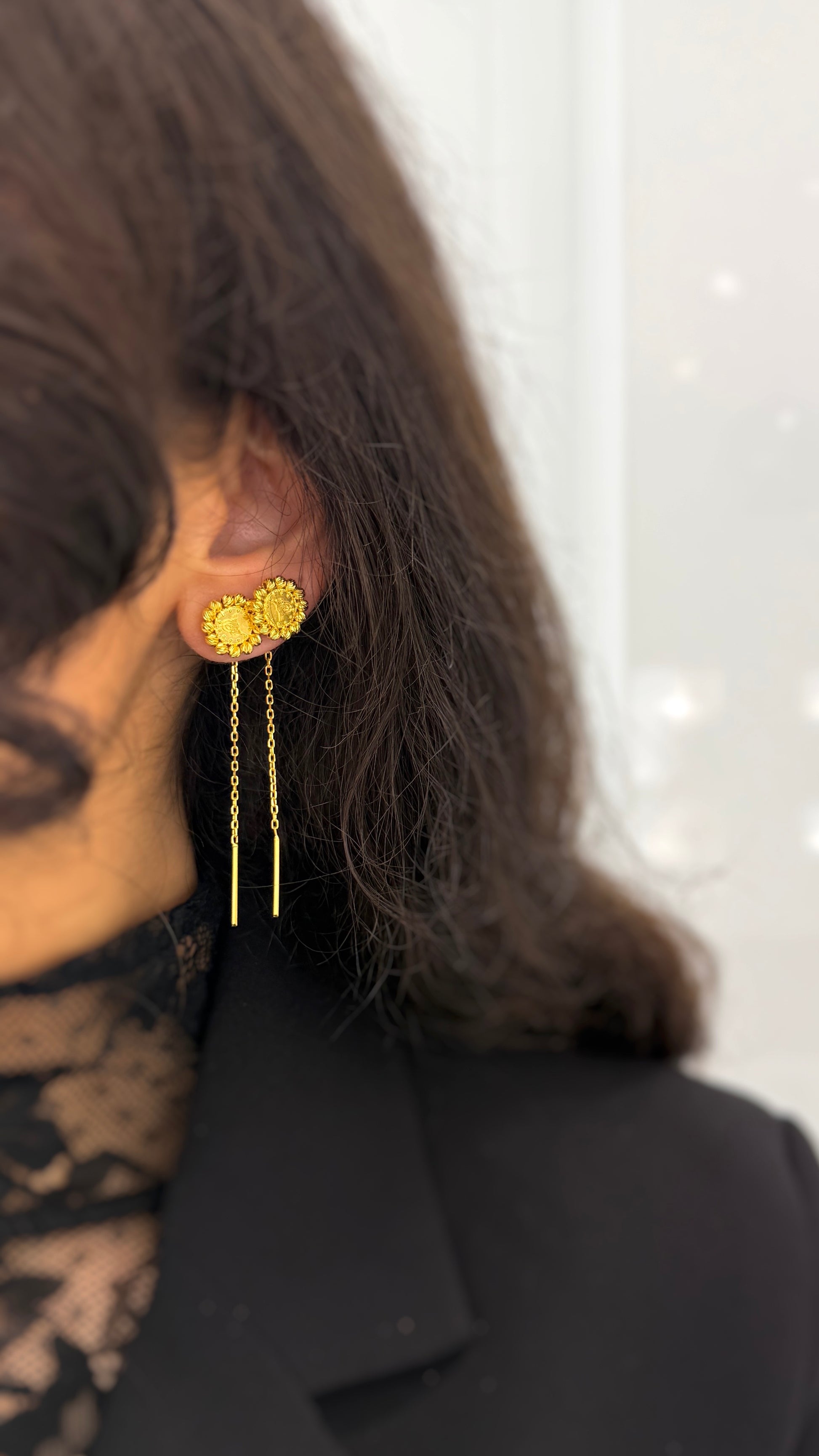 Die zarte Kette sorgt für einen leichten, fließenden Fall am Ohr und unterstreicht die feminine Raffinesse dieses exklusiven Designs. Tuğrâzen ist damit ein Ausdruck von Stil, Geschichte und modernem Luxus zugleich.