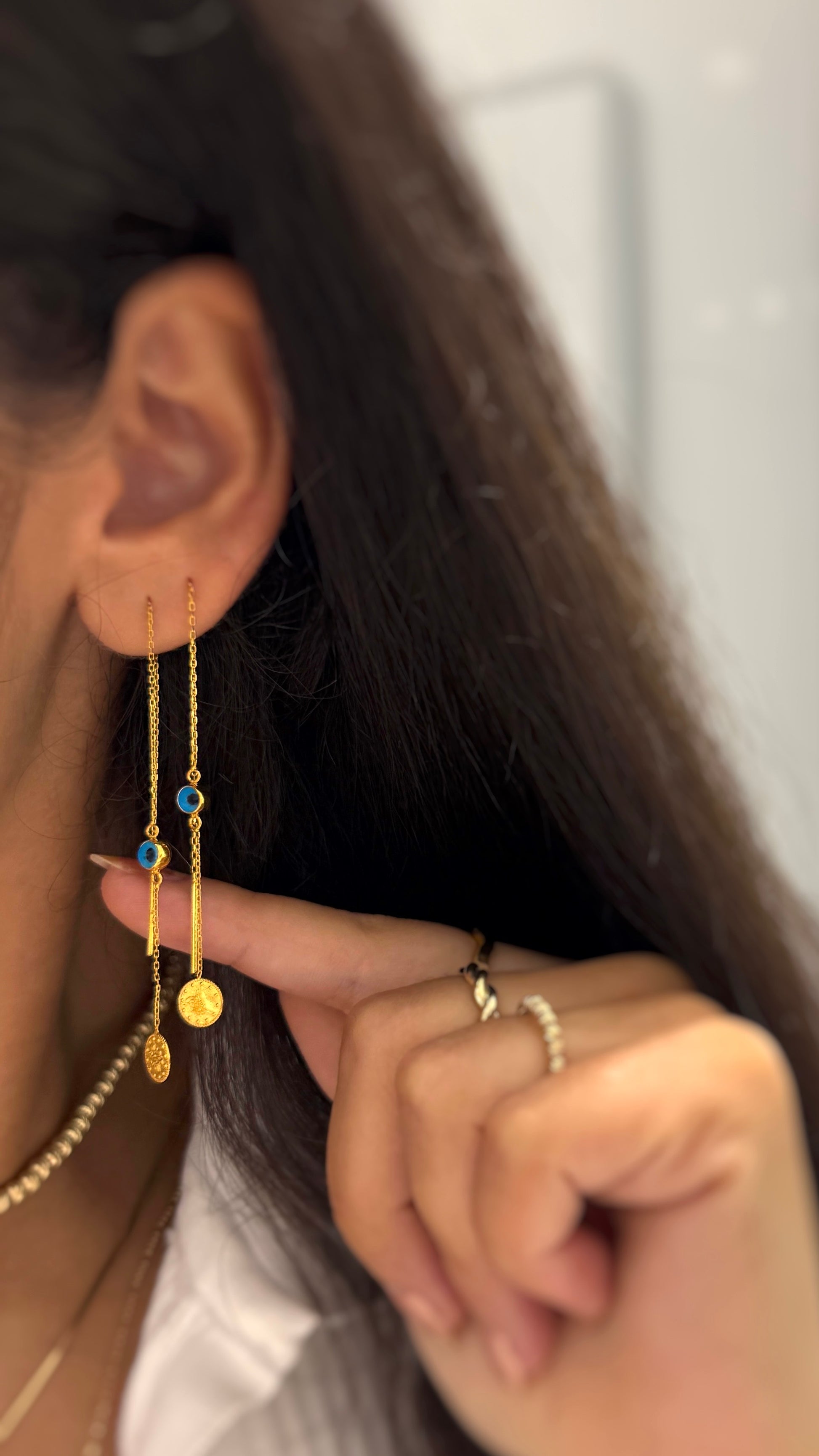 Neu im Sortiment: Diese wunderschönen Blue Eye Tuğra Ohrringe aus 14 Karat Gold sind ein absoluter Hingucker. Mit dem traditionellen Tuğra-Symbol und dem modernen blauen Auge sind sie nicht nur ein Schmuckstück, sondern auch ein Glücksbringer und Ausdruck von Stil. Tragen Sie sie mit Stolz!