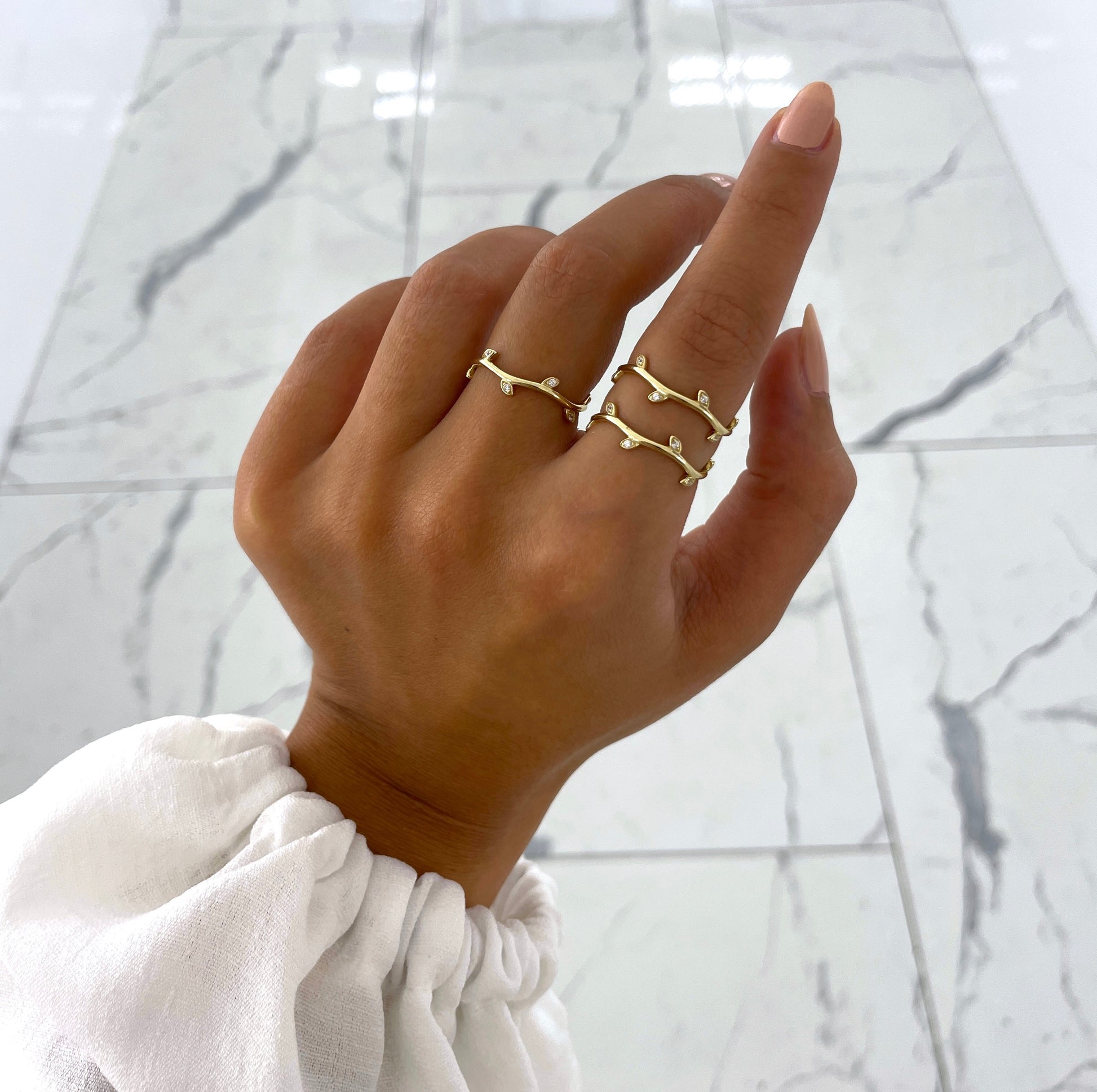 Der Çınar Ring in 585er Gelbgold bietet ein modernes Design mit dezenten Blüten geschmückt mit glitzernden Zirkonia Steinen. Dieses elegantes Statement-Accessoire bietet einen luxuriösen Look, den Sie nicht entgehen lassen sollten.