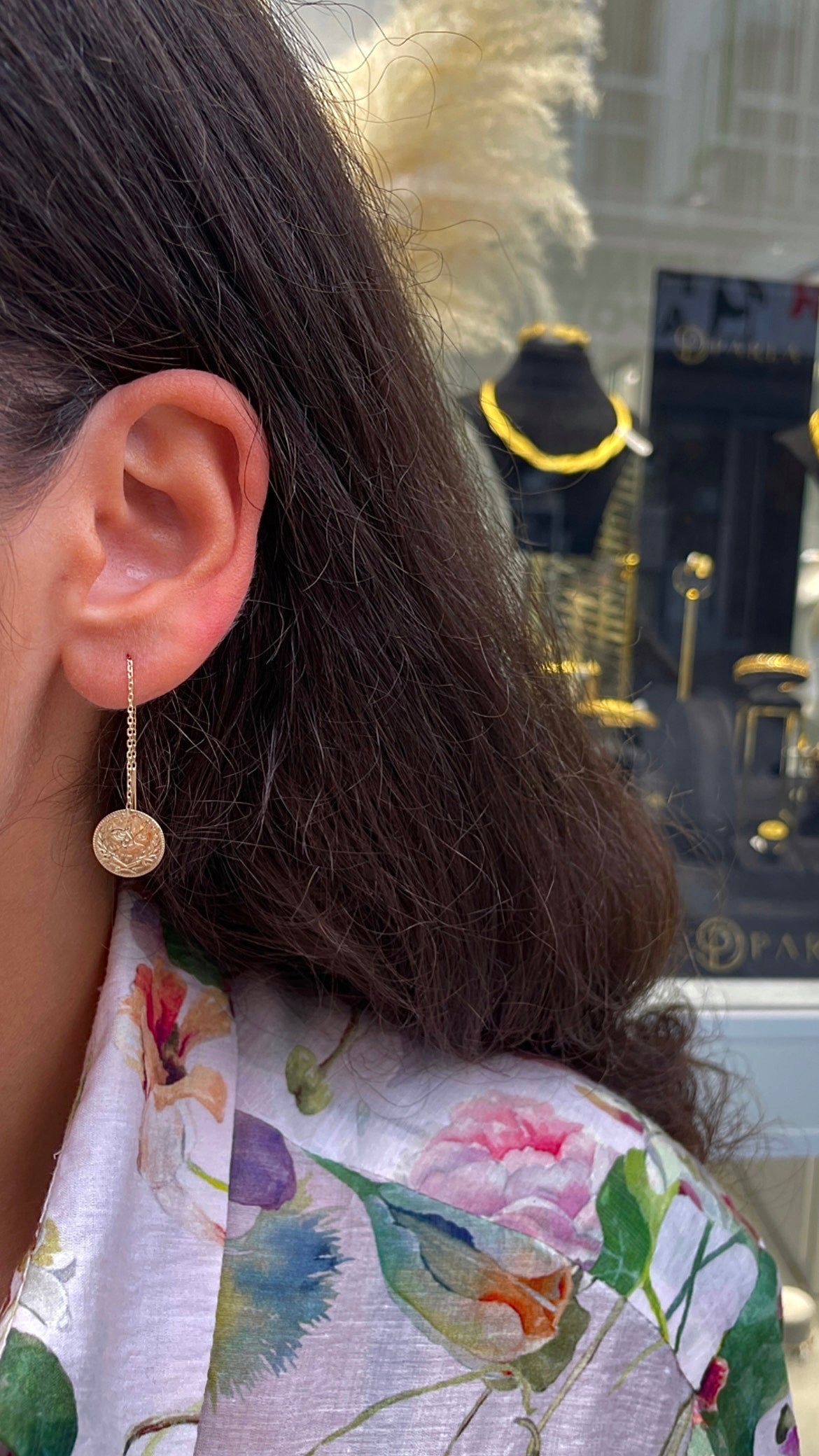 Der Sallan Tugra Ohrring ist ein exklusives Schmuckstück, handgefertigt aus 585er Gelbgold. Diese luxuriösen Kettenohrringe sind ein zeitloser Klassiker, der jedem Outfit ein elegantes Finish verleiht. Ein Must-Have für jeden Schmuckliebhaber.