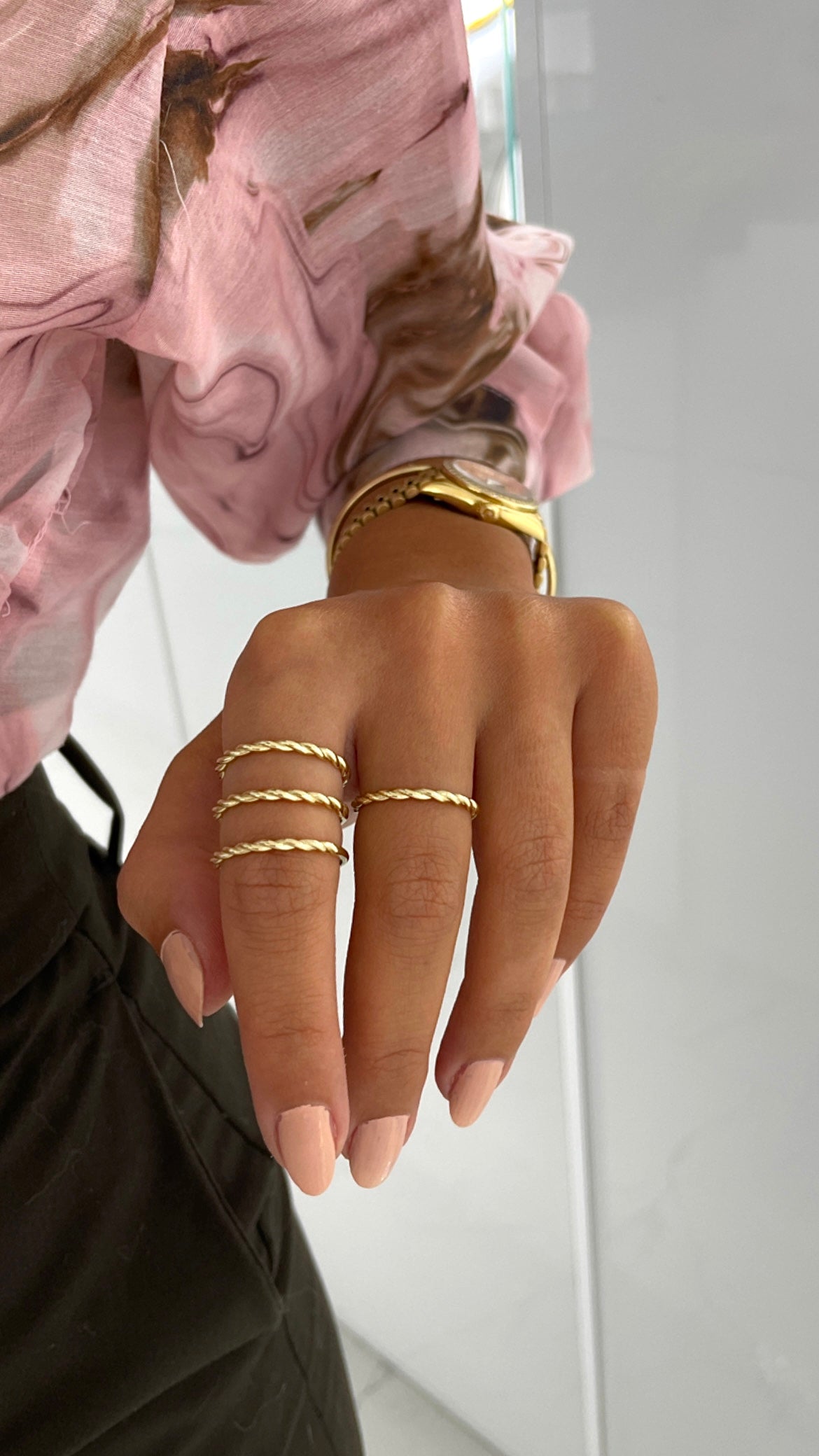 Der Yeni Burgu Ring aus 585er Gelbgold ist schlicht und geflochten, wodurch er ein perfektes Accessoire zum Kombinieren ist. Seine feminine, aber zeitlose Optik macht ihn zu einem stylischen Begleiter für jeden Tag.