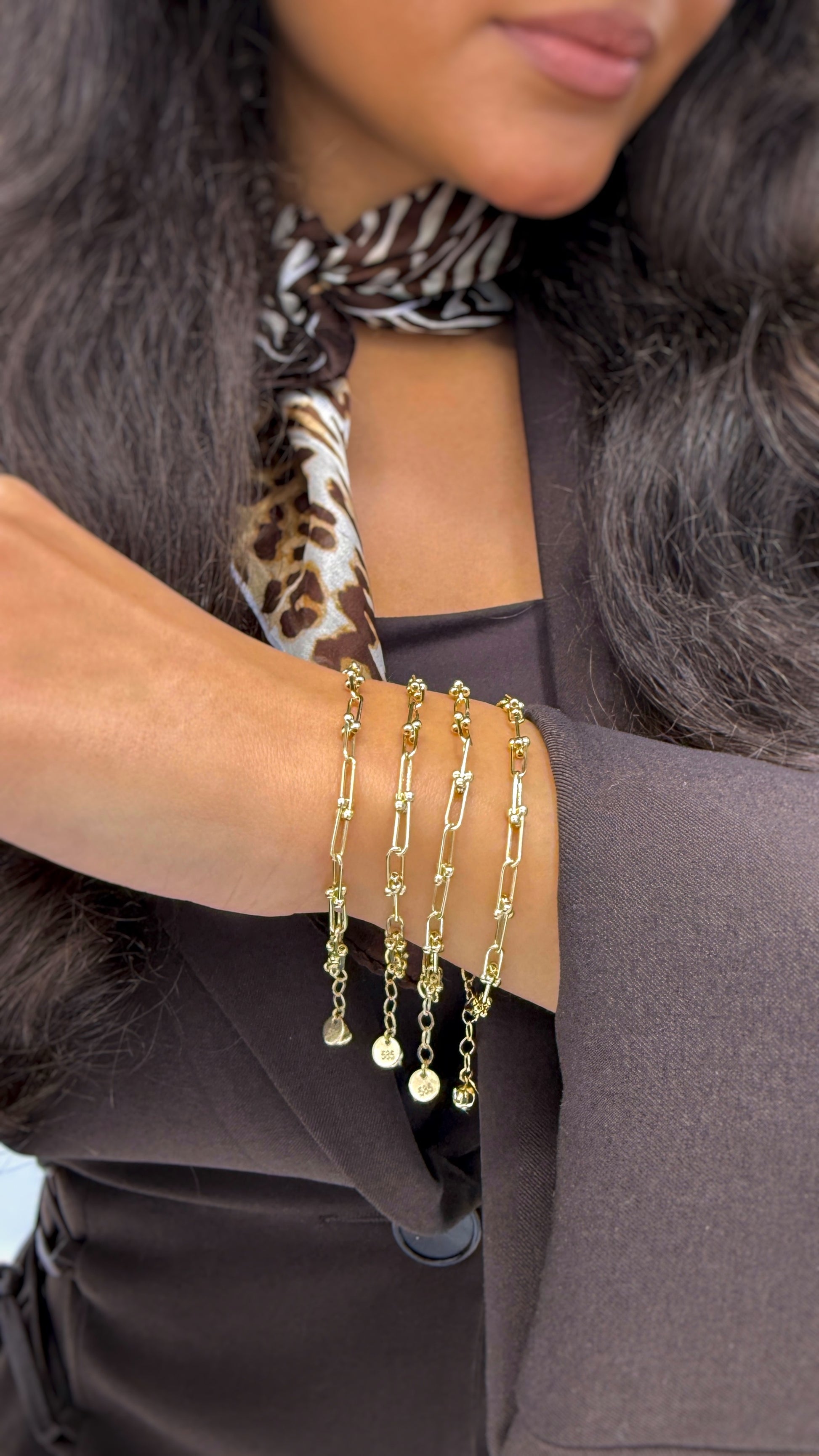 Die feine, präzise gearbeitete Form verleiht dem Armband eine leichte, schwebende Wirkung, während der warme Goldton jedem Look eine zeitlose Hochwertigkeit schenkt. Ob allein getragen für einen puristischen Stil oder in Kombination mit anderen Schmuckstücken – dieses Armband fügt sich nahtlos ein und setzt dennoch einen unverkennbaren Akzent.