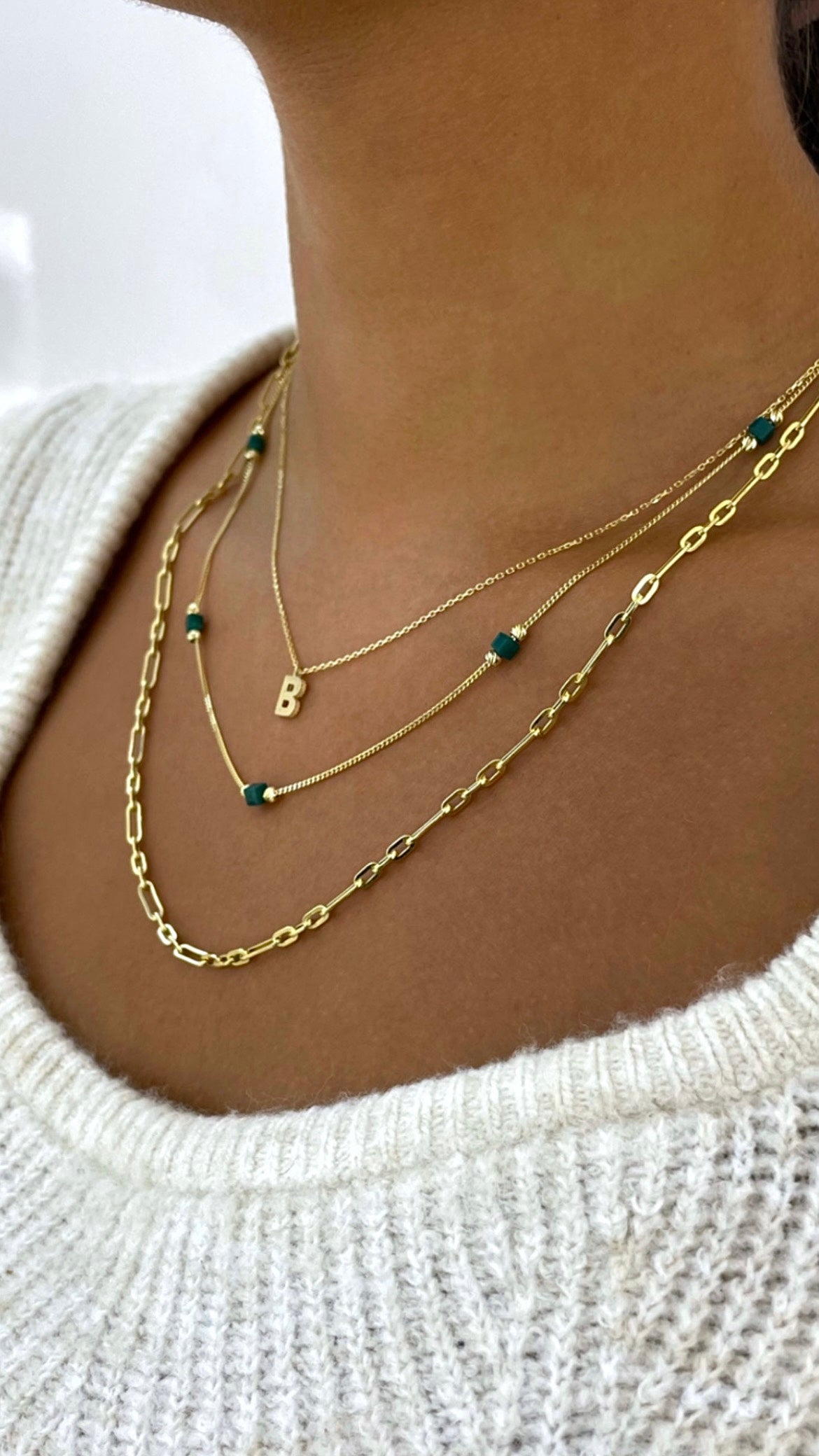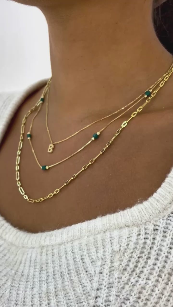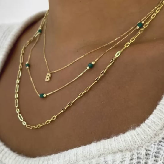 2. Zümrüt: Collier mit dunkel grünen Steinen & Dorika Kugeln in einer feinen Panzerkette , 45 cm lang